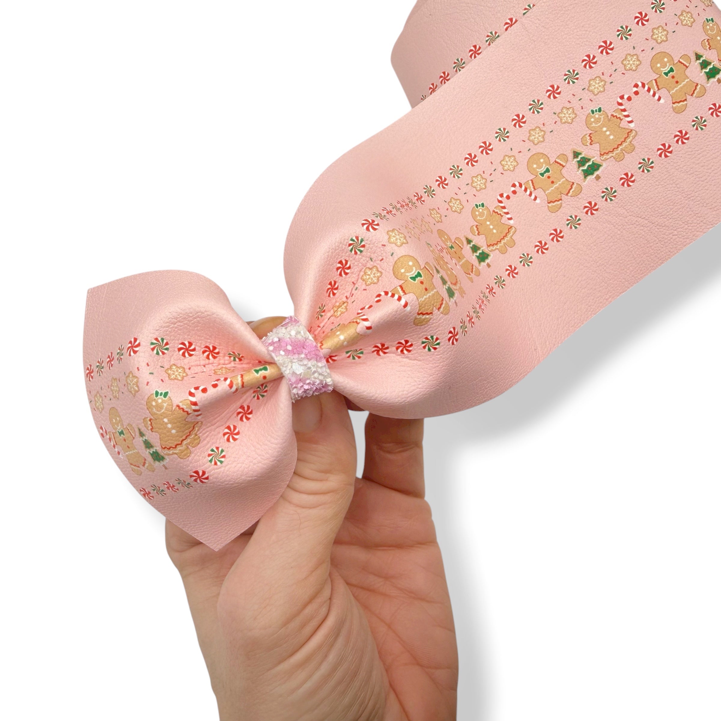 PRETTY PINK GINGERBREADS LEATHERETTE MEGA BOW STRIPS- 2 SIZES