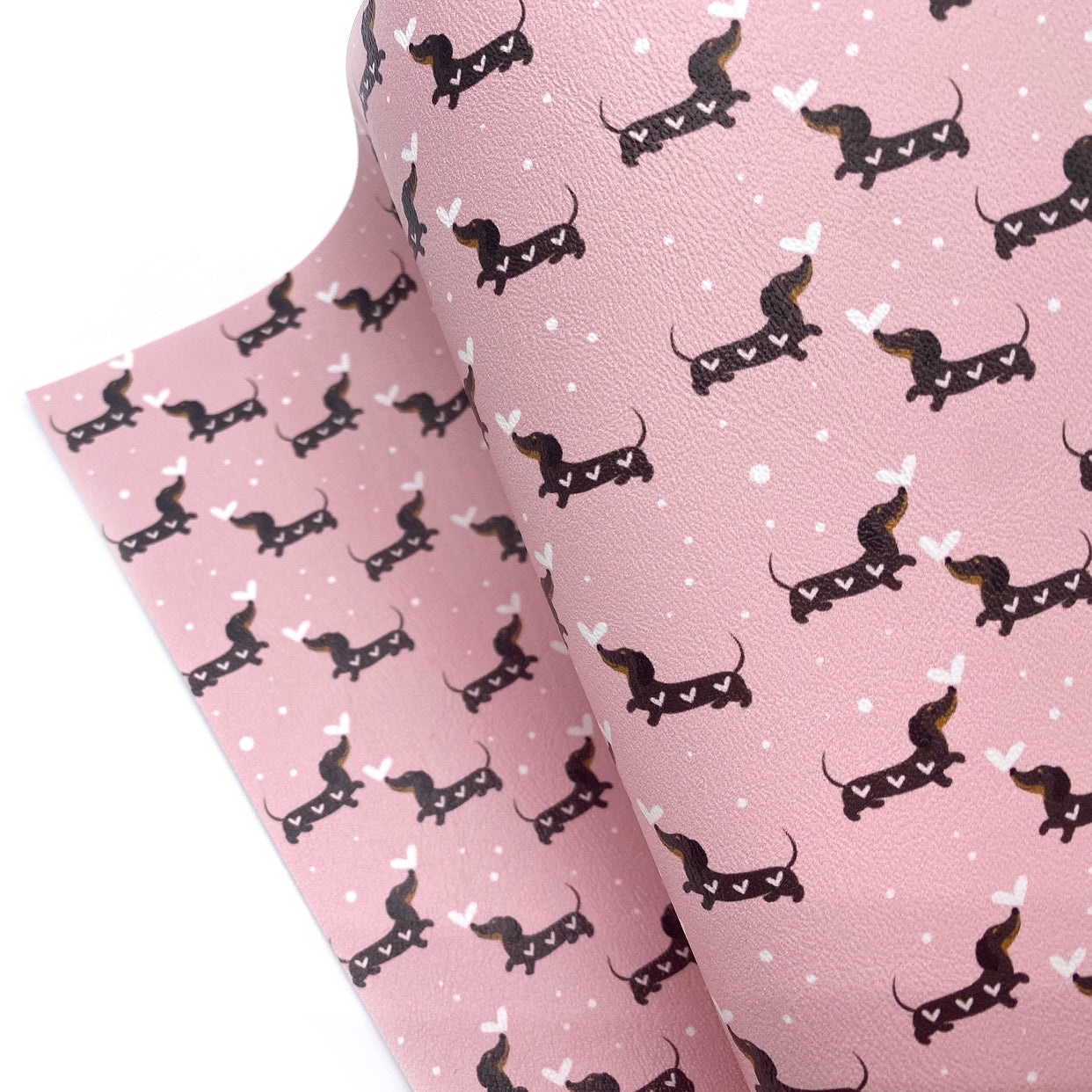 Pink Sausage Dogs Premium Faux Leather Fabric Sheets