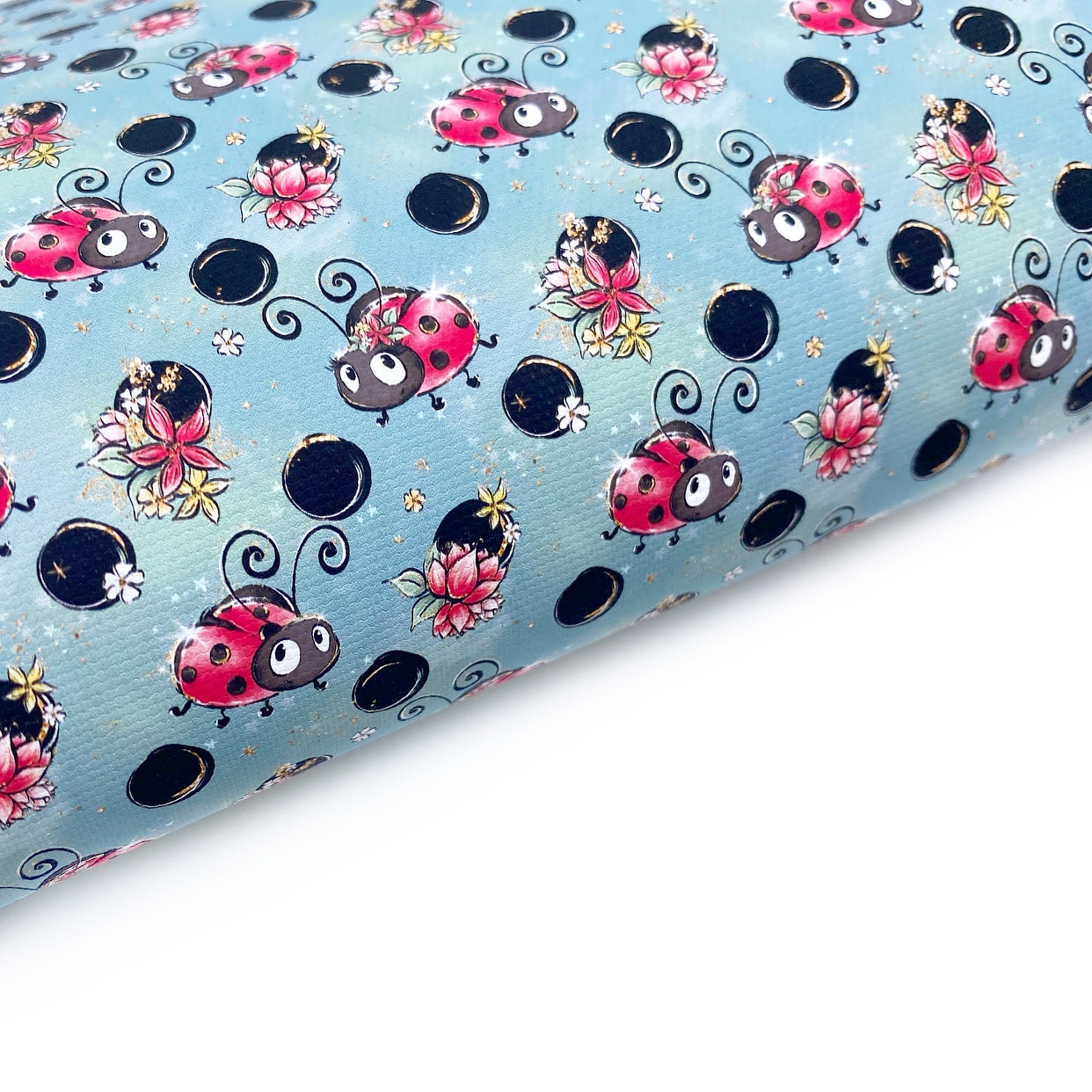 Lady Bugs Polka Dot Green Lux Premium Canvas Bow Fabrics