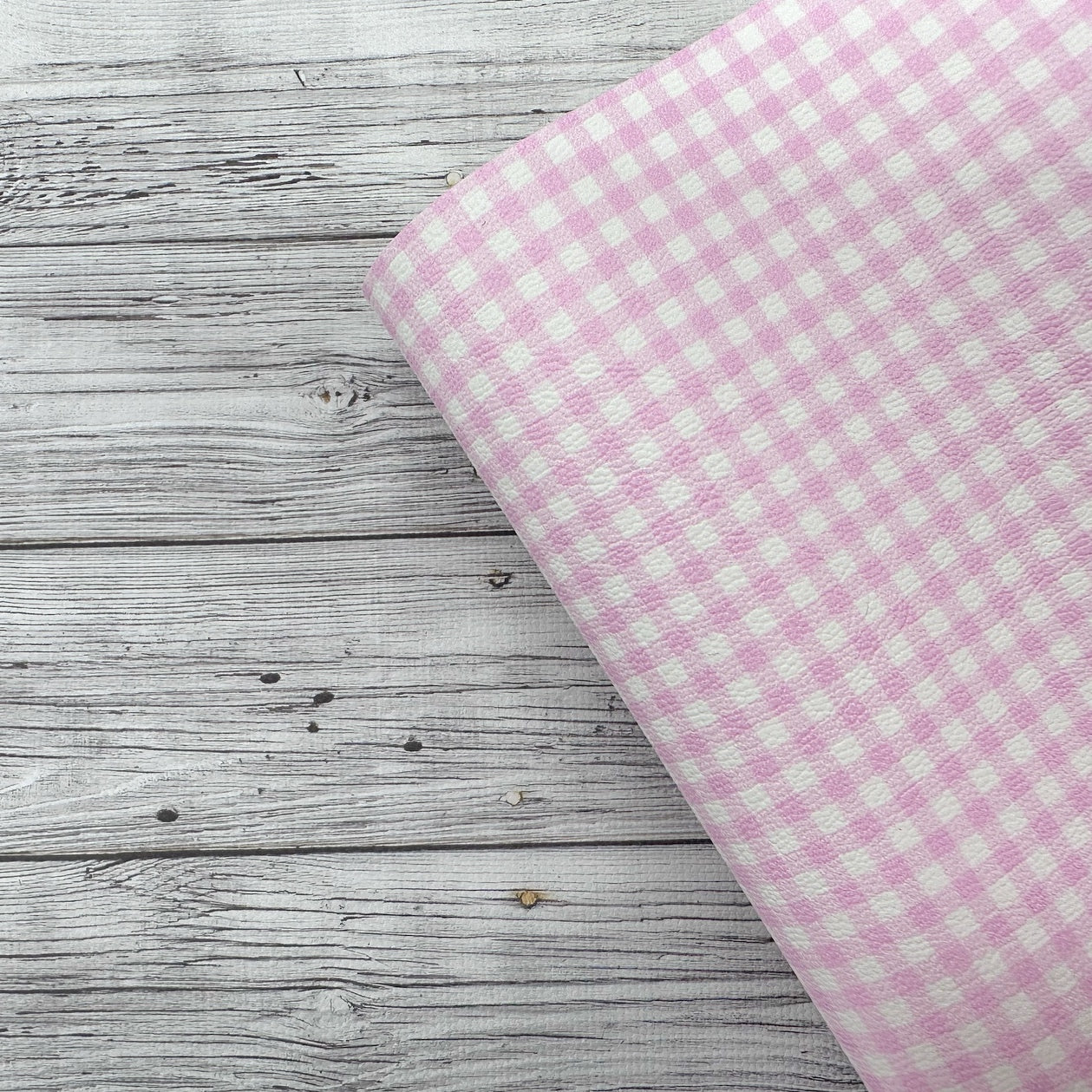Baby Pink Gingham Mini Premium Faux Leather Fabric Sheets