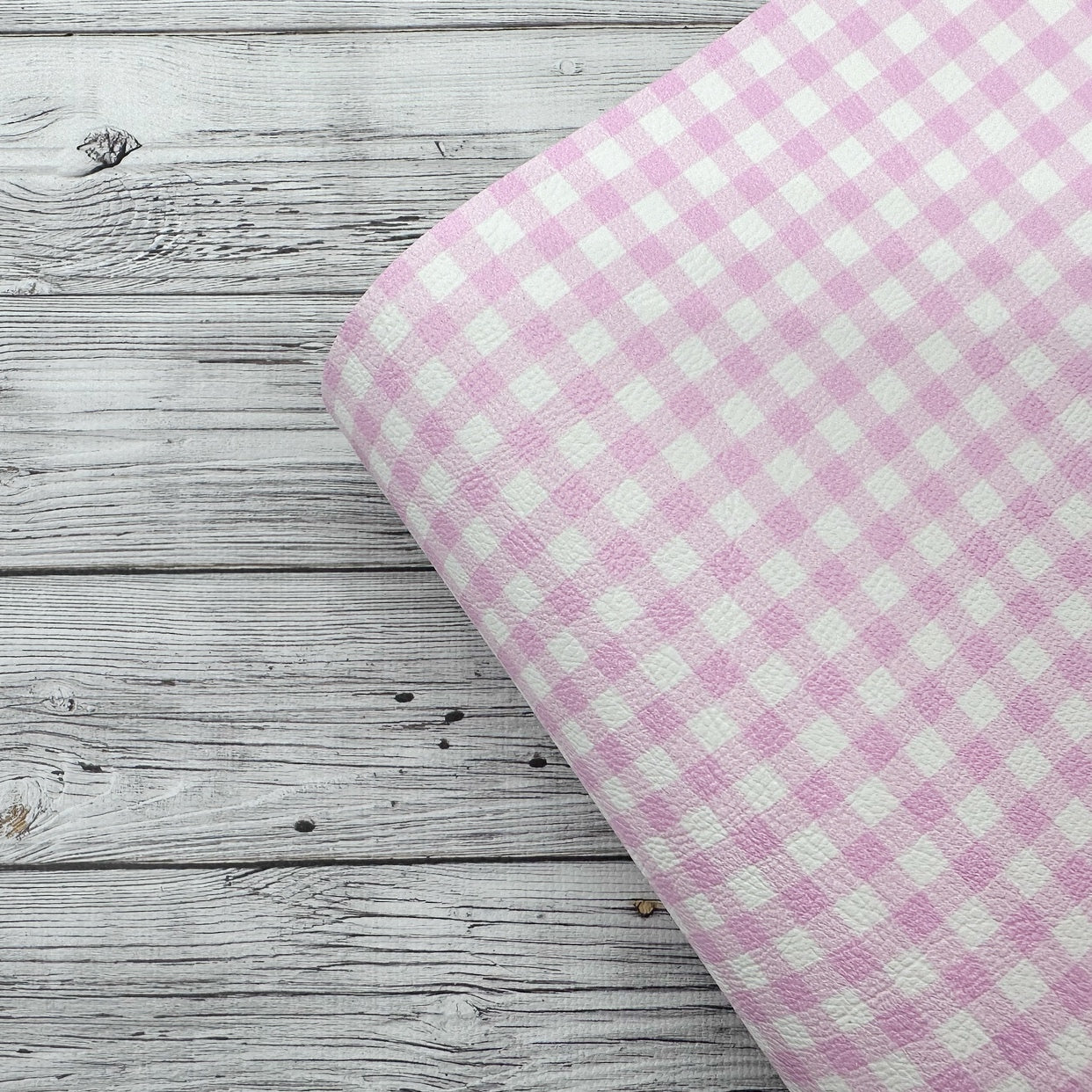 Baby Pink Gingham Standard Premium Faux Leather Fabric Sheets
