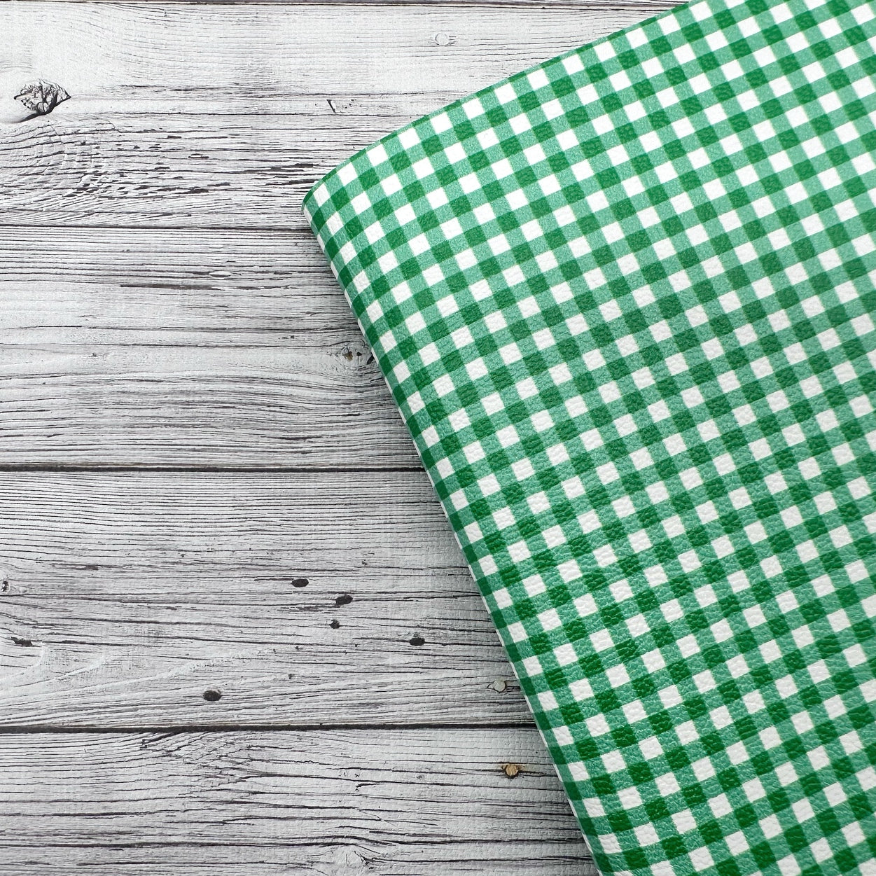 Emerald Green Gingham Mini Premium Faux Leather Fabric Sheets