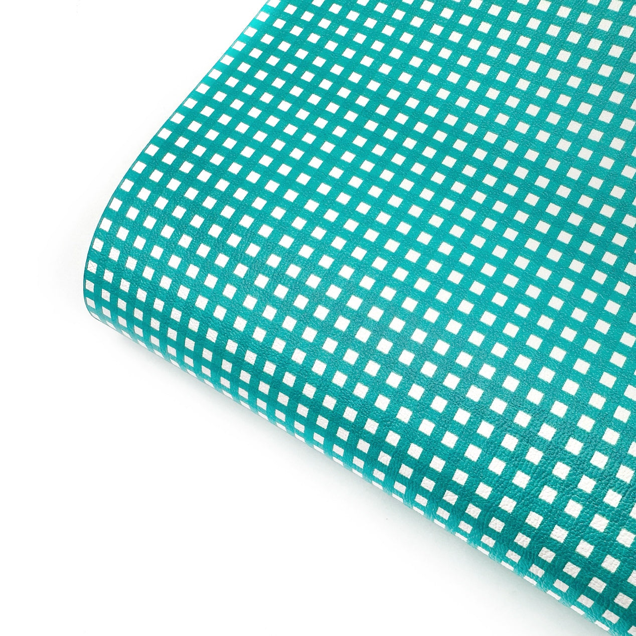 Jade Green Gingham Mini Premium Faux Leather Fabric Sheets