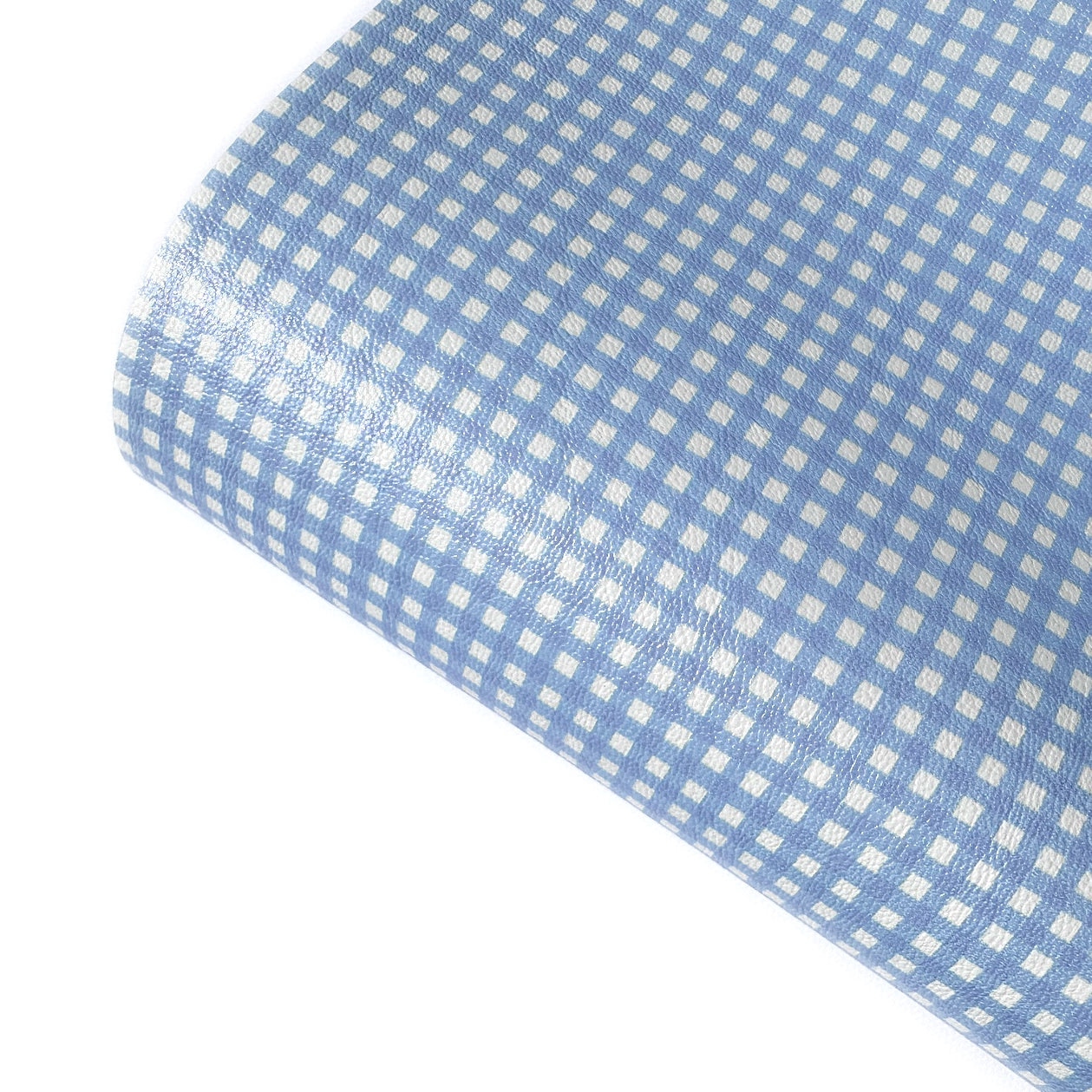 Light Blue Gingham Mini Premium Faux Leather Fabric Sheets