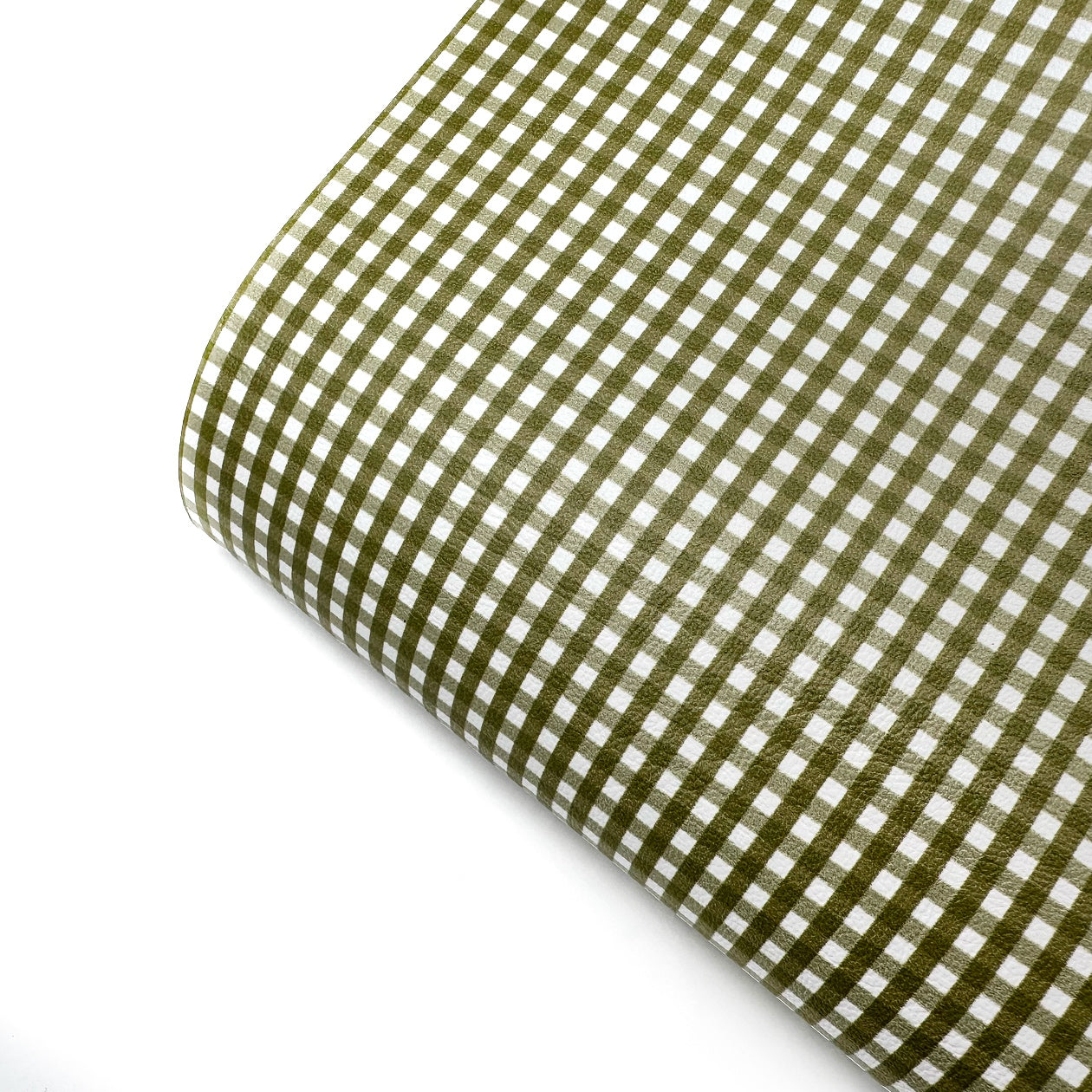 Olive Green Gingham Mini Premium Faux Leather Fabric Sheets