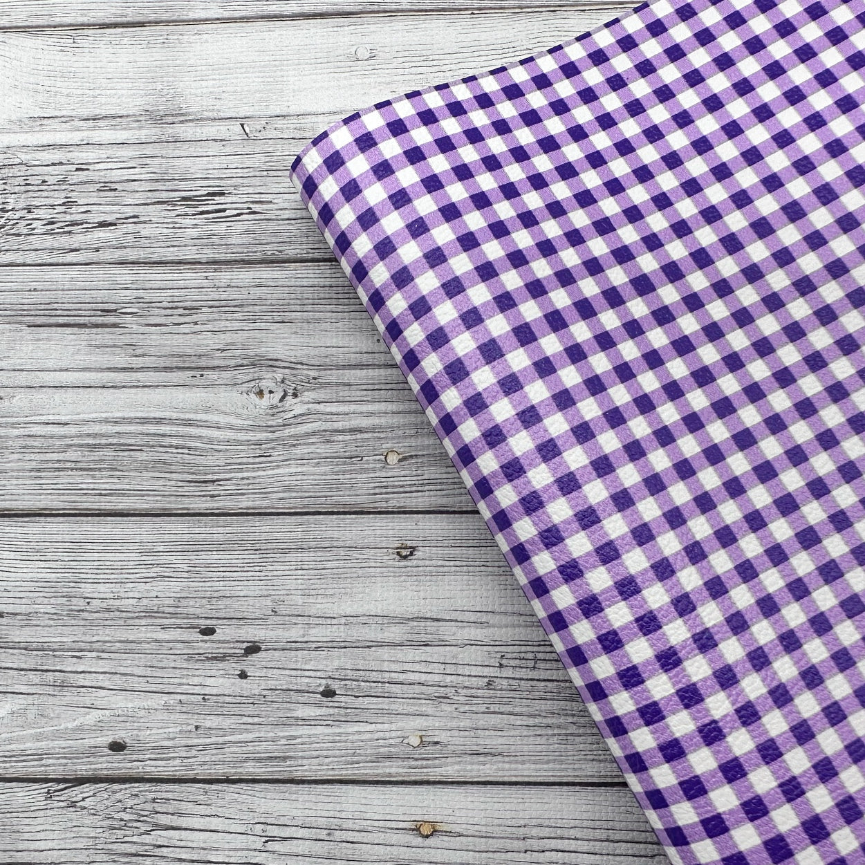 Purple Gingham Mini Premium Faux Leather Fabric Sheets