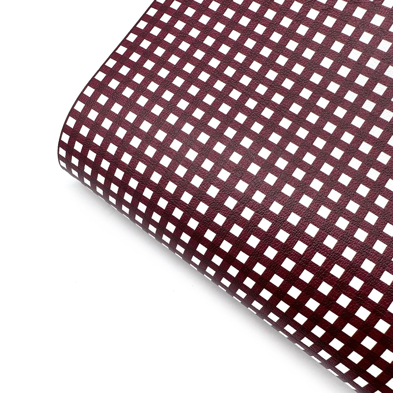 True Burgundy Gingham Standard Premium Faux Leather Fabric Sheets