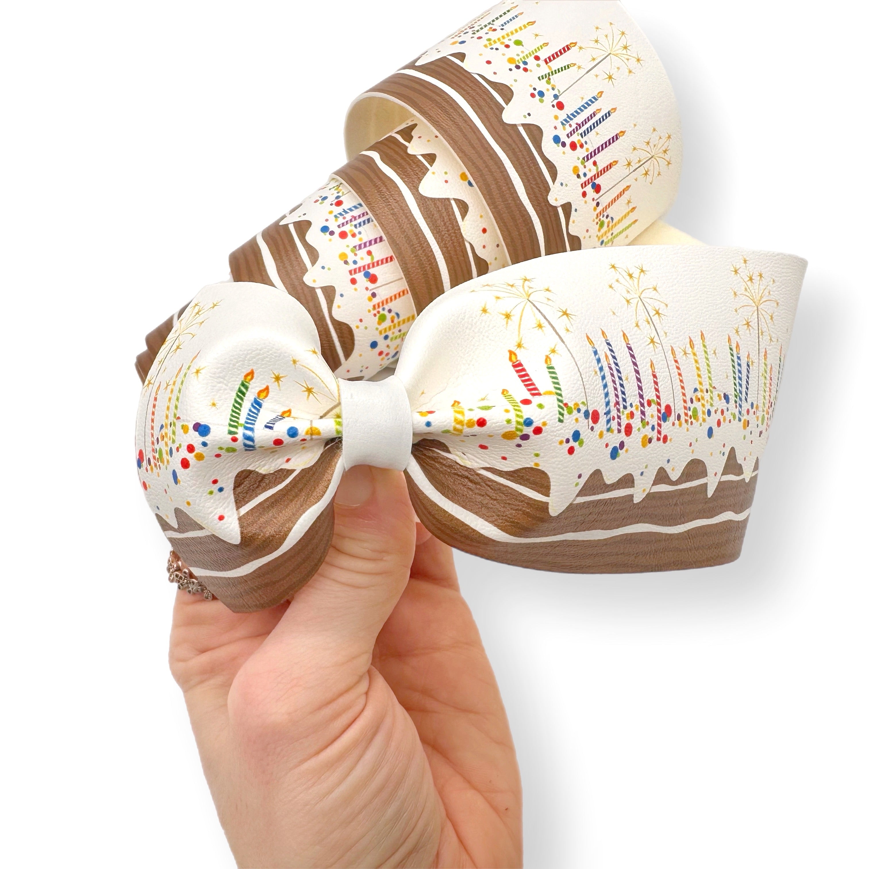 Chocolate Birthday Cake Faux Leather Mega Bow Strips