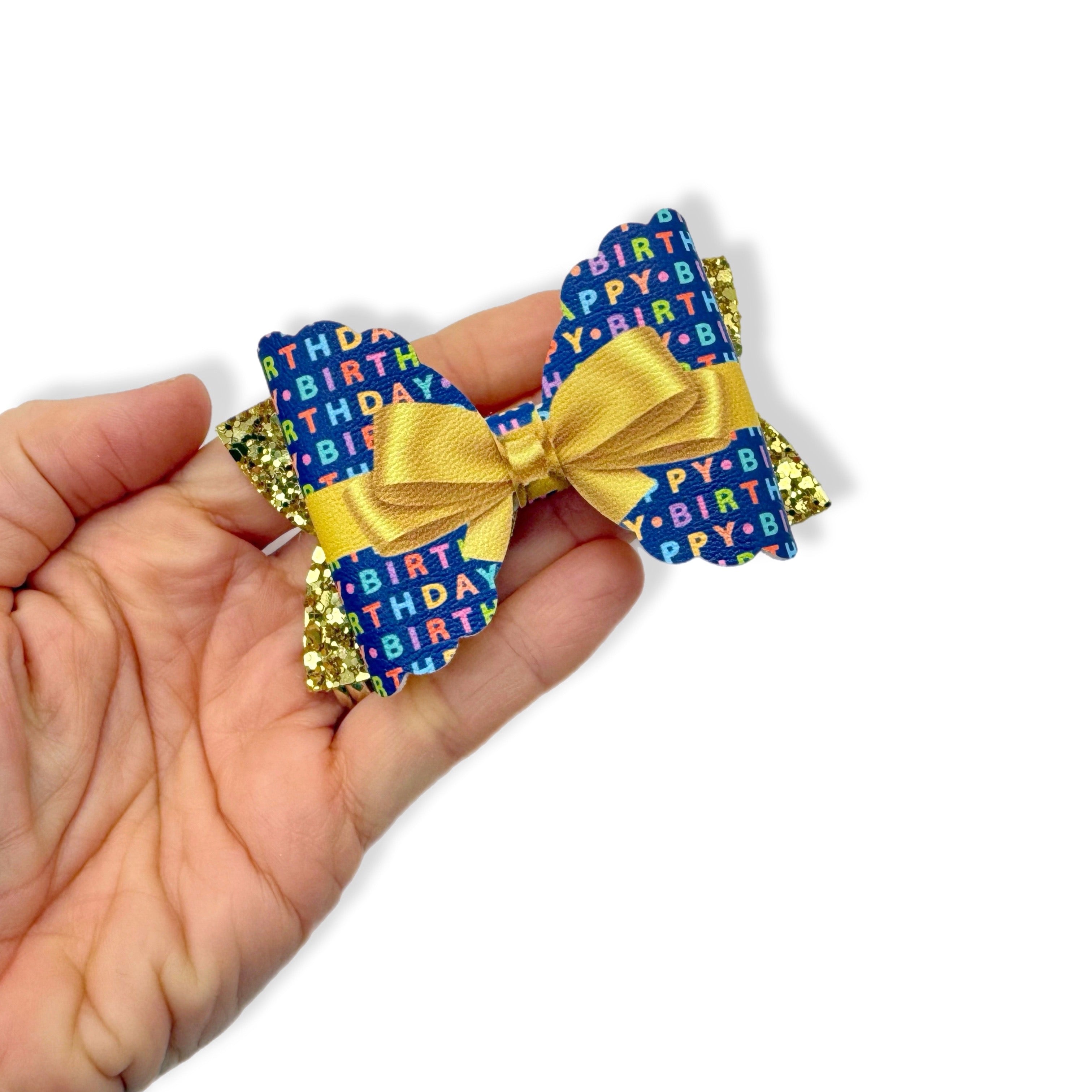 HAPPY BIRTHDAY NAVY RIBBON BOW 3.5” | PRE CUT DIY HAIR BOW LOOPS