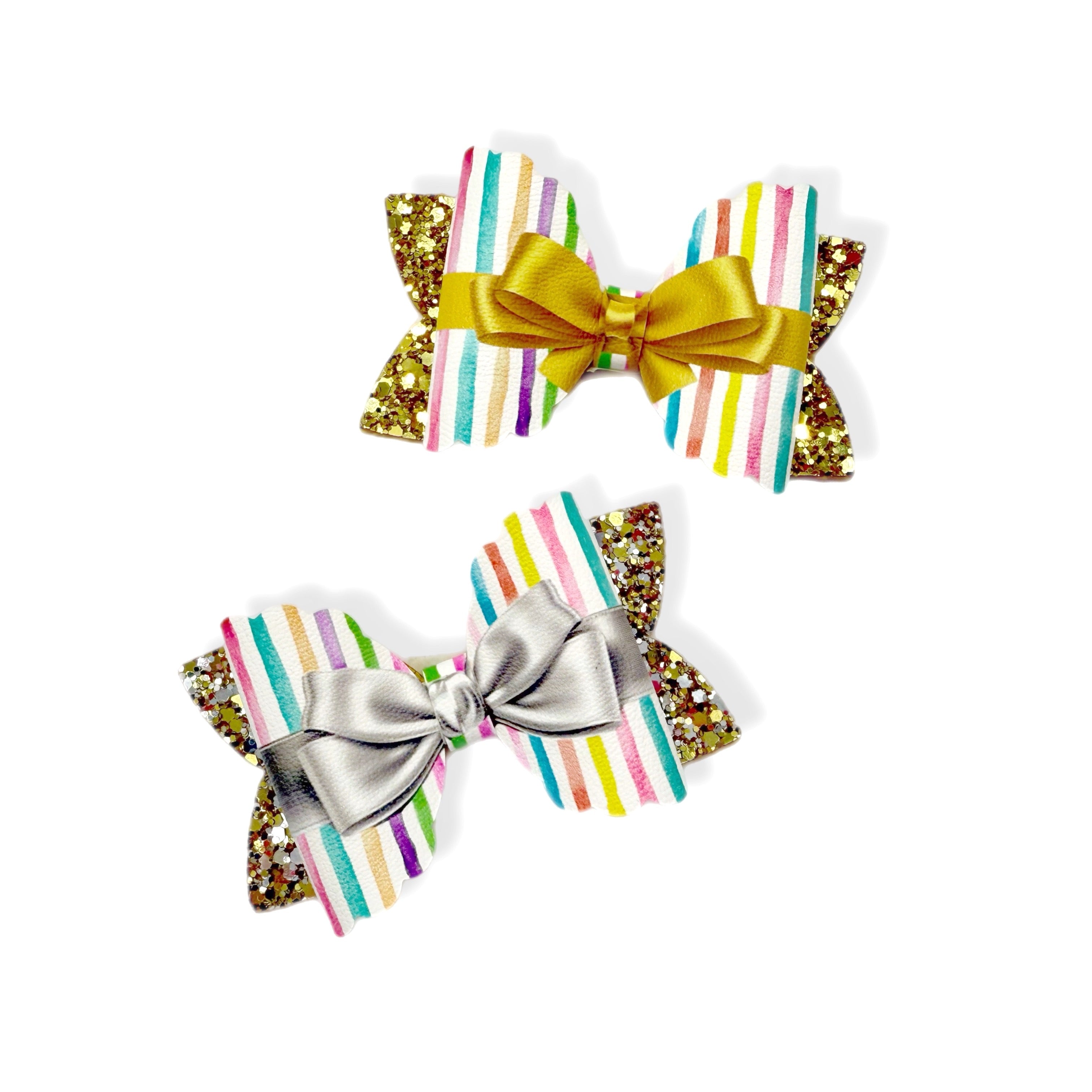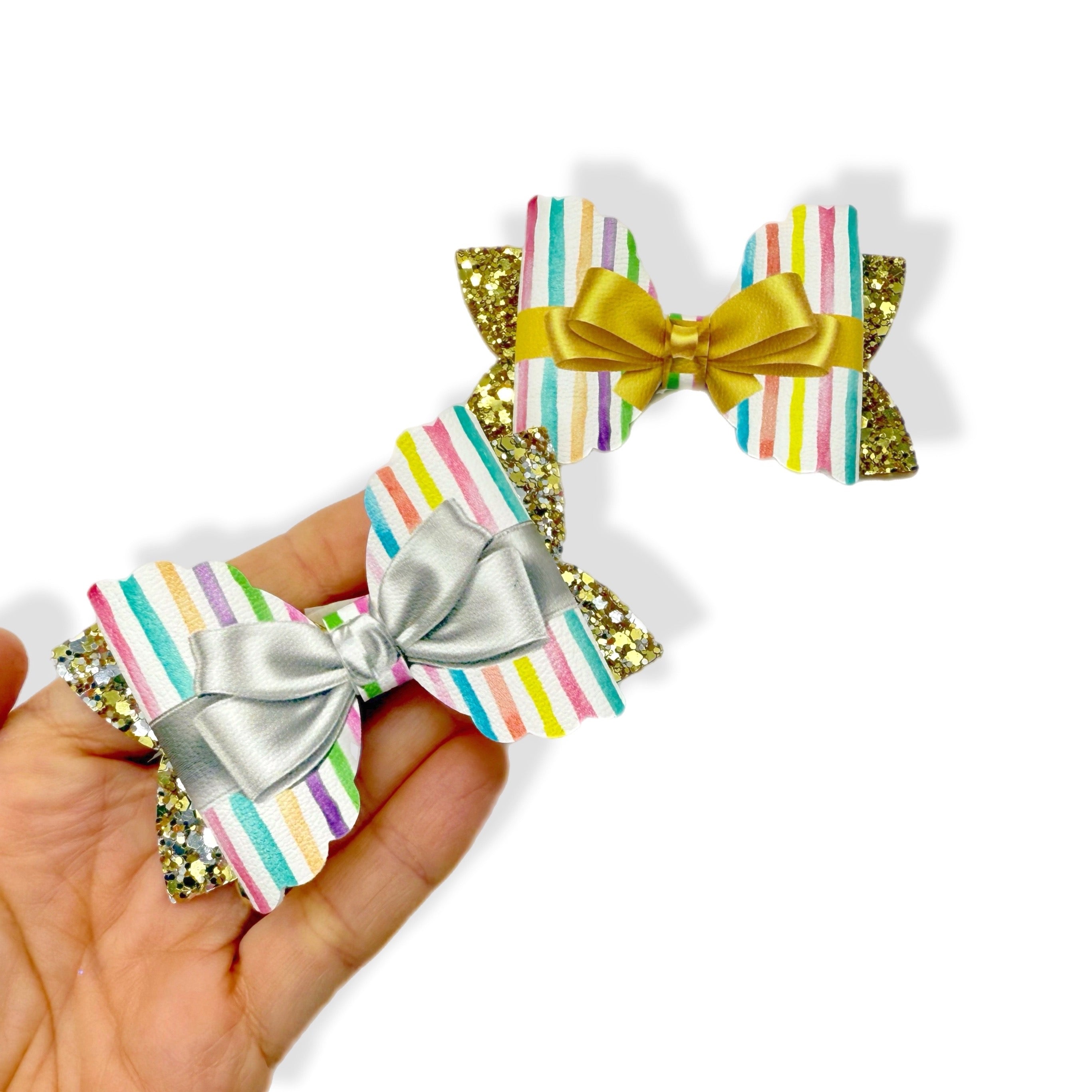 RAINBOW PARTY STRIPES RIBBON BOW 3.5” | PRE CUT DIY HAIR BOW LOOPS