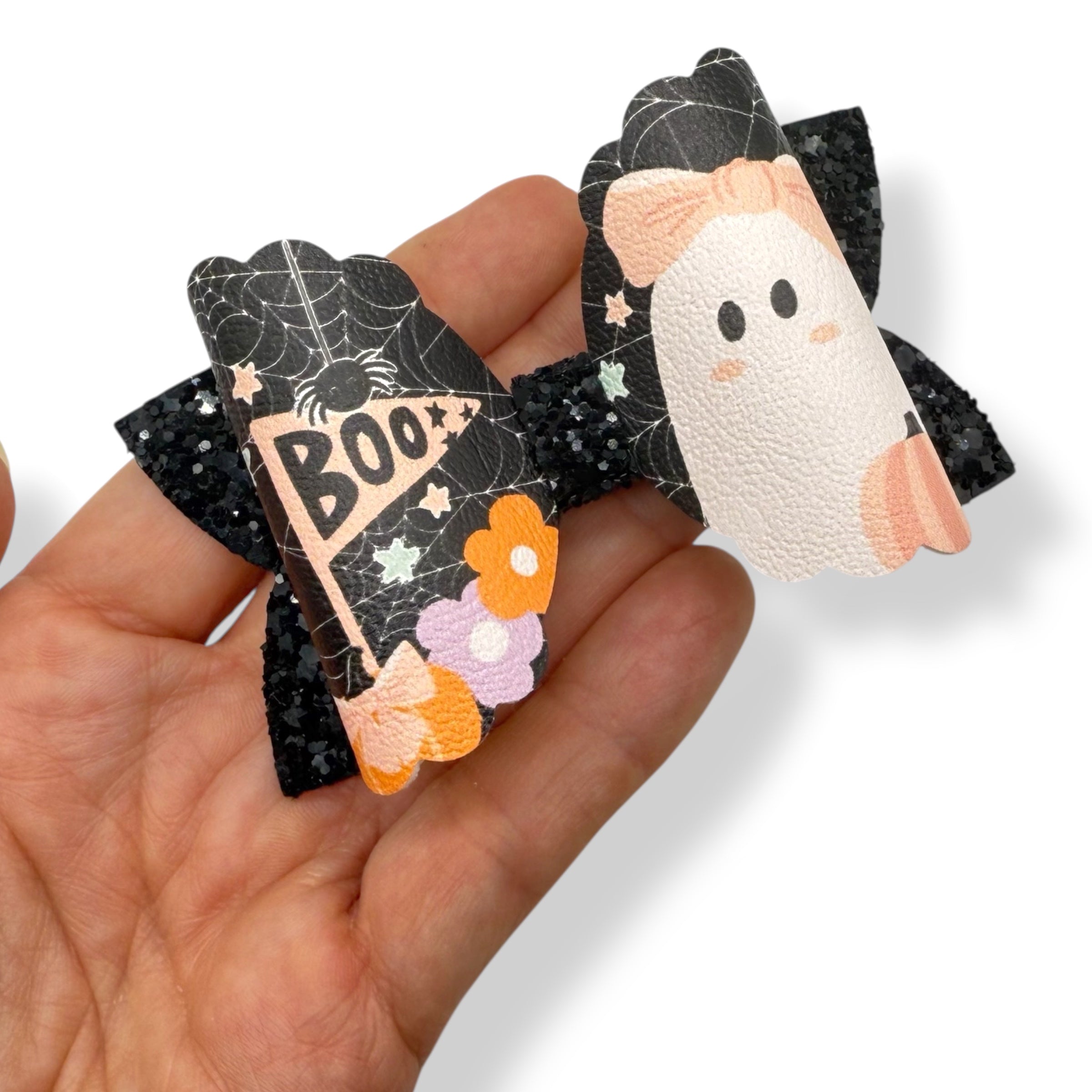 BOO GHOST 3.5” | PRE CUT DIY LEATHERETTE BOW LOOPS
