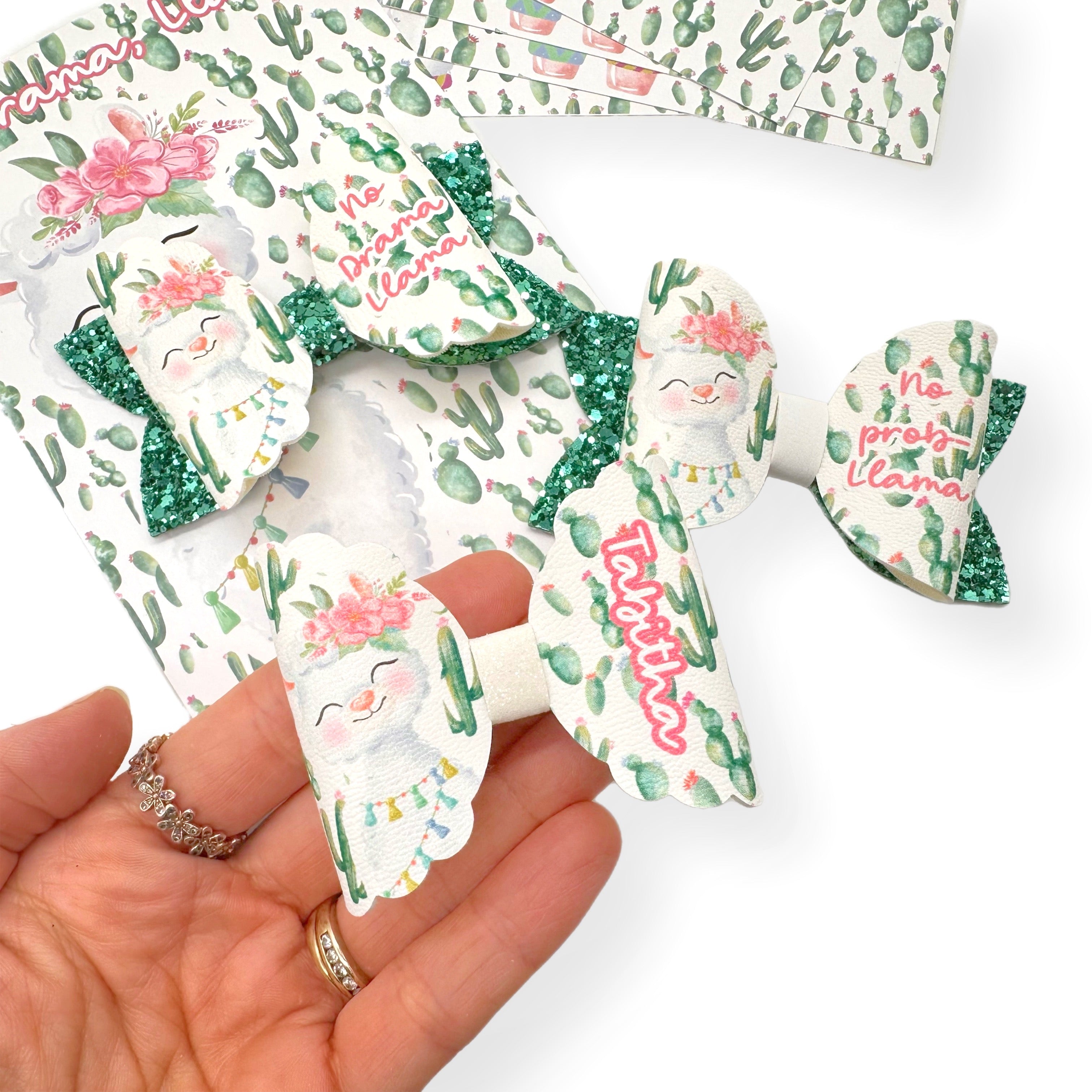 Cute Drama Llama Personalised 3.5” | Pre Cut DIY Hair Bow Loops & Optional Tails