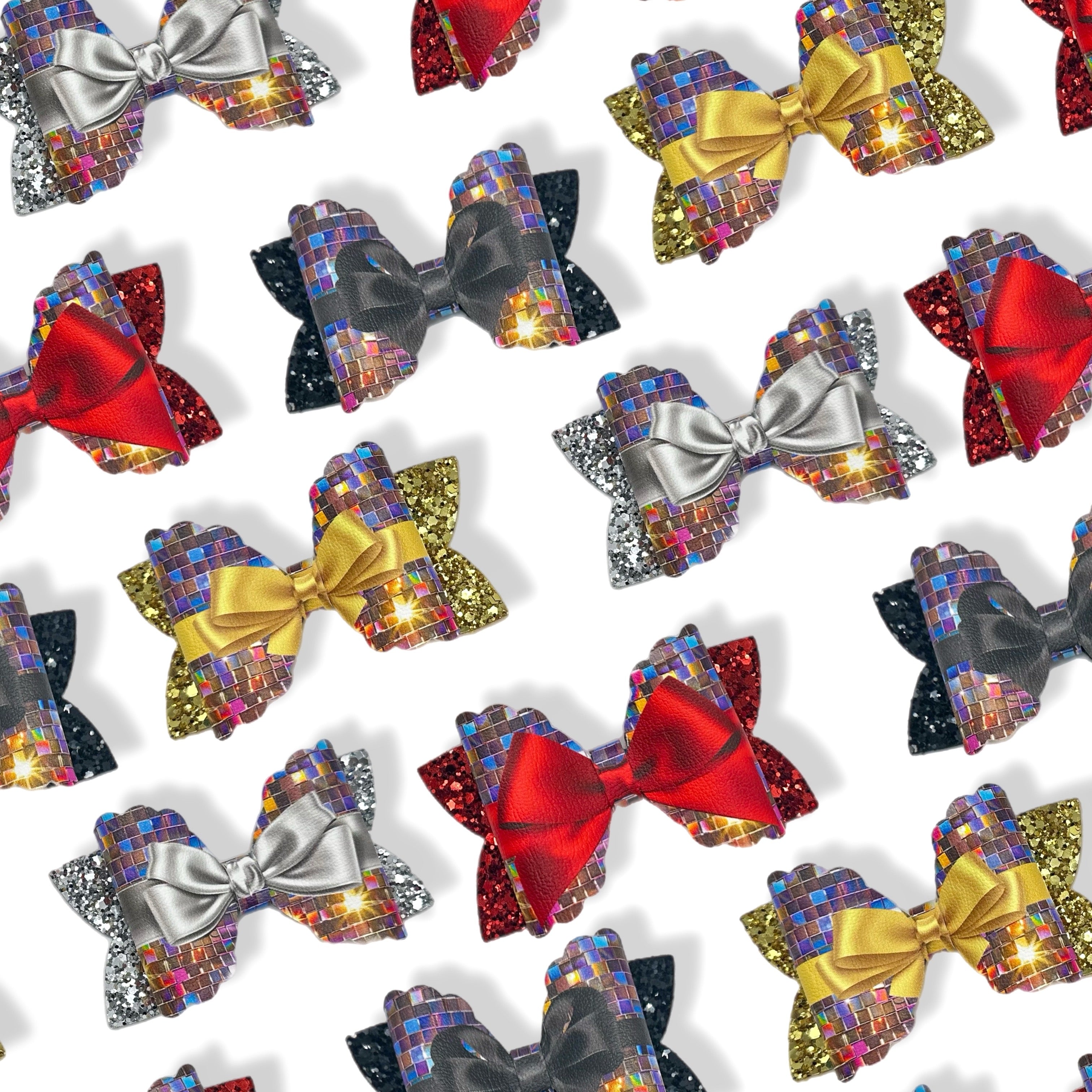 DISCO MIRROR BALL RIBBON BOW 3.5” | PRE CUT DIY HAIR BOW LOOPS