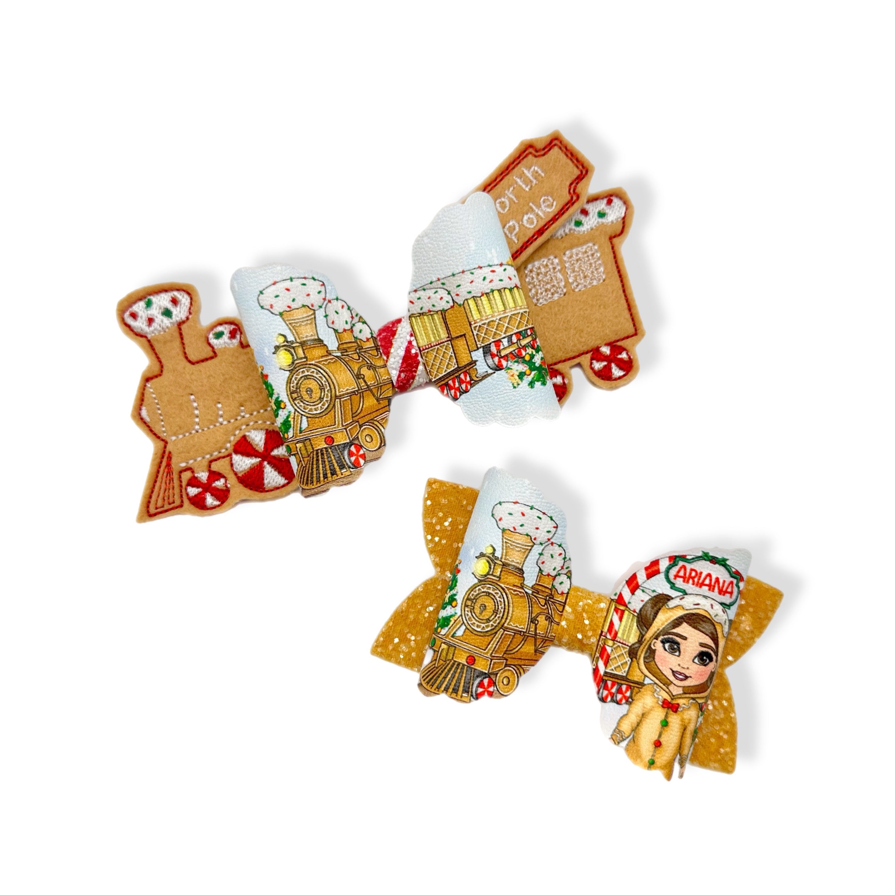 GINGERBREAD DOLLY EXPRESS TRAIN BOWS 3.5” | PRE CUT DIY HAIR BOW LOOPS