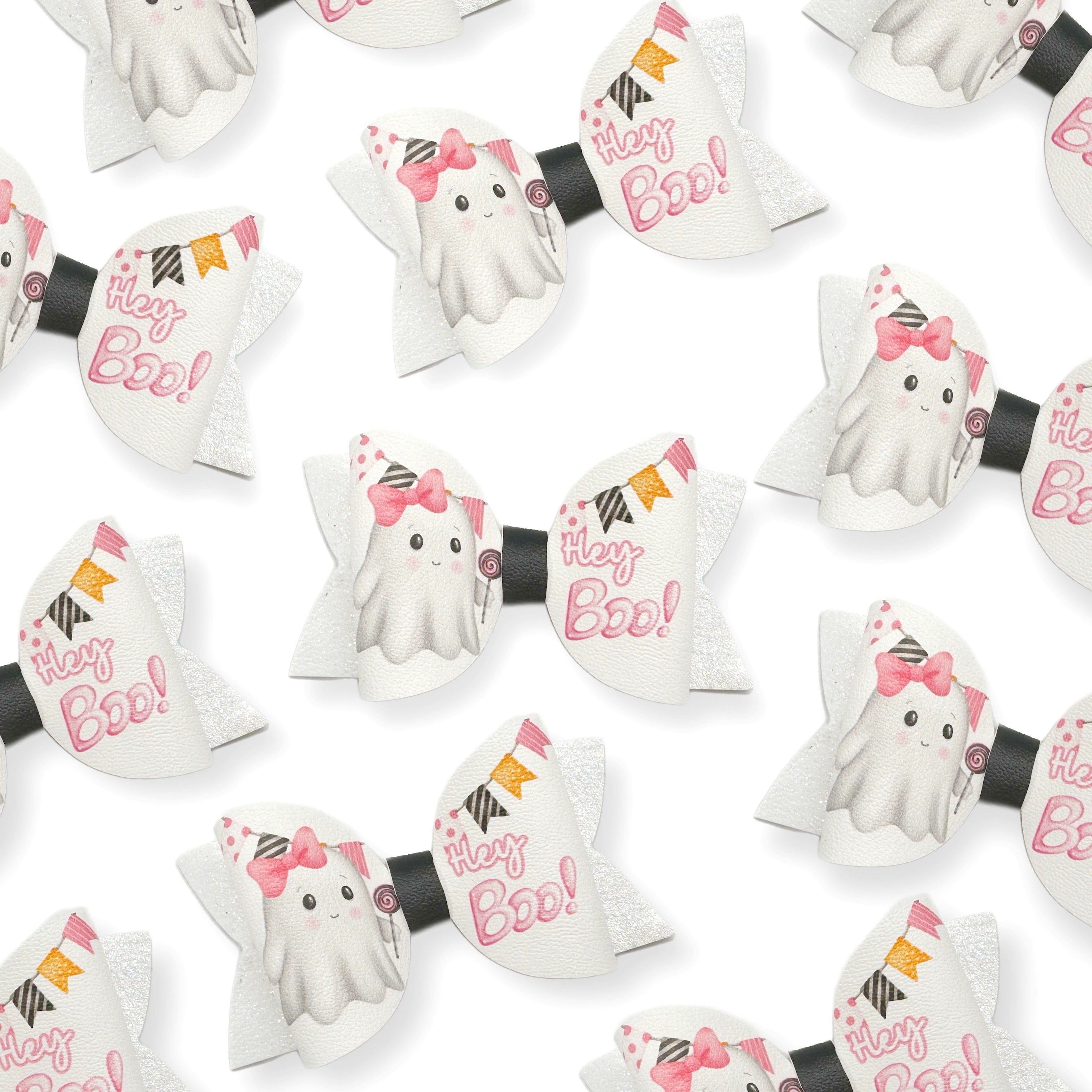 Hey Boo Cute Ghost Bows 3.5” | Pre Cut DIY Hair Bow Loops