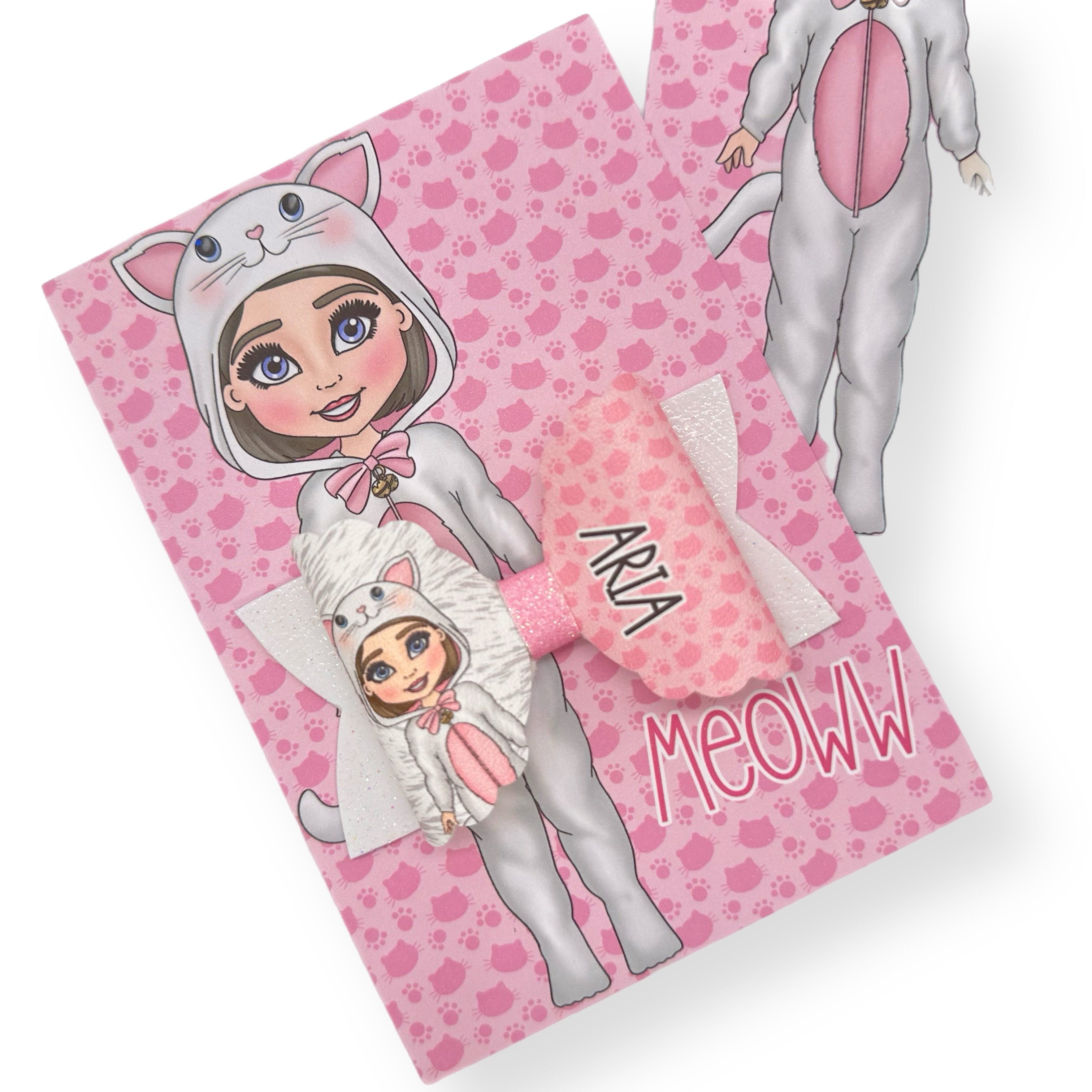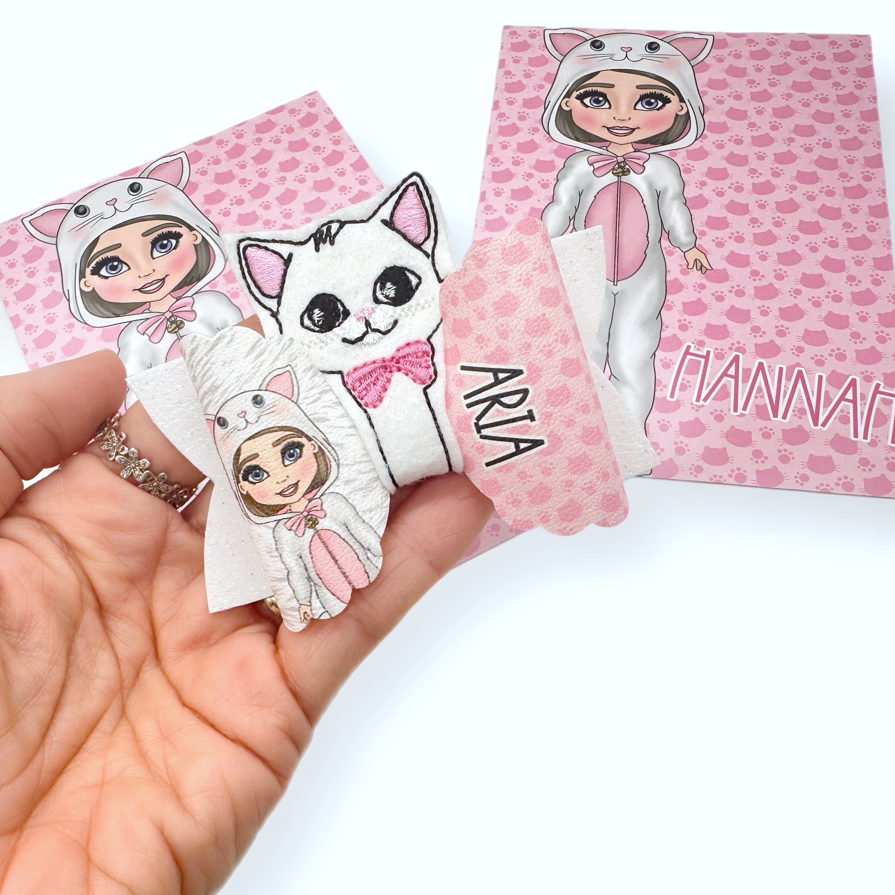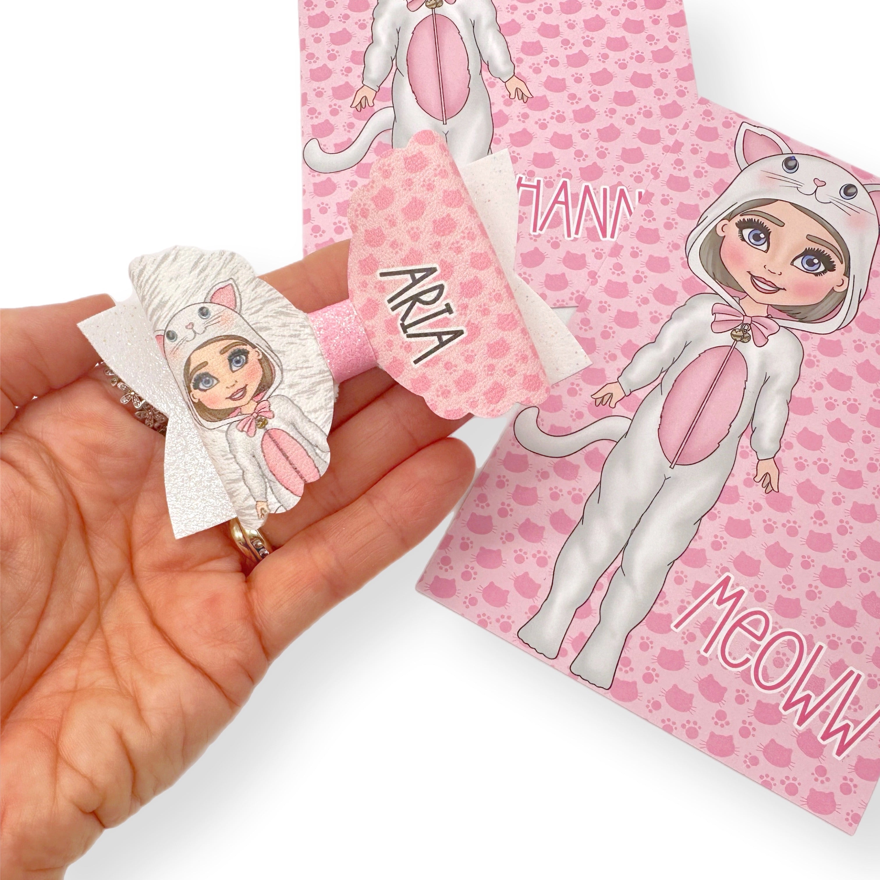Little White Kitten Dolly's 3.5” | Pre Cut DIY Hair Bow Loops with optional Glitter Tails