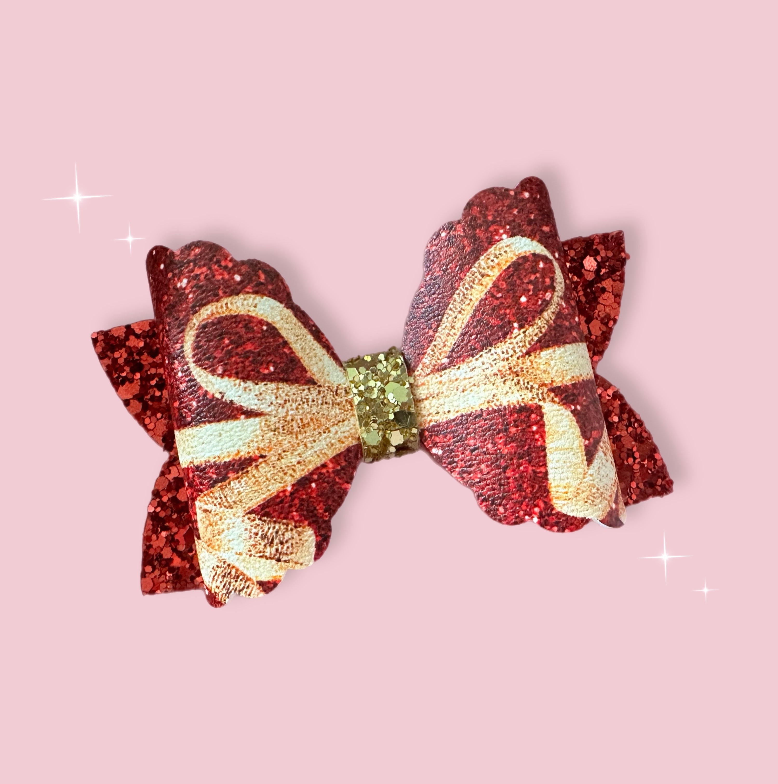 Red & Gold Party Glitter Gift Bows 3.5” | Pre Cut DIY Hair Bow Loops
