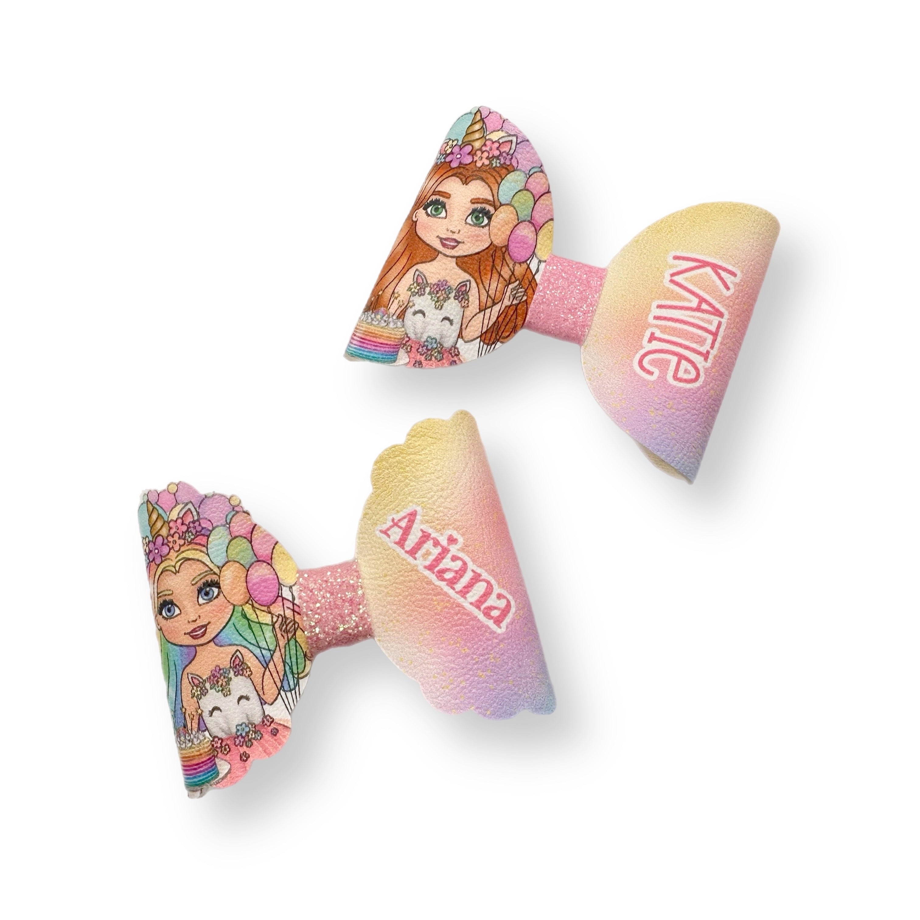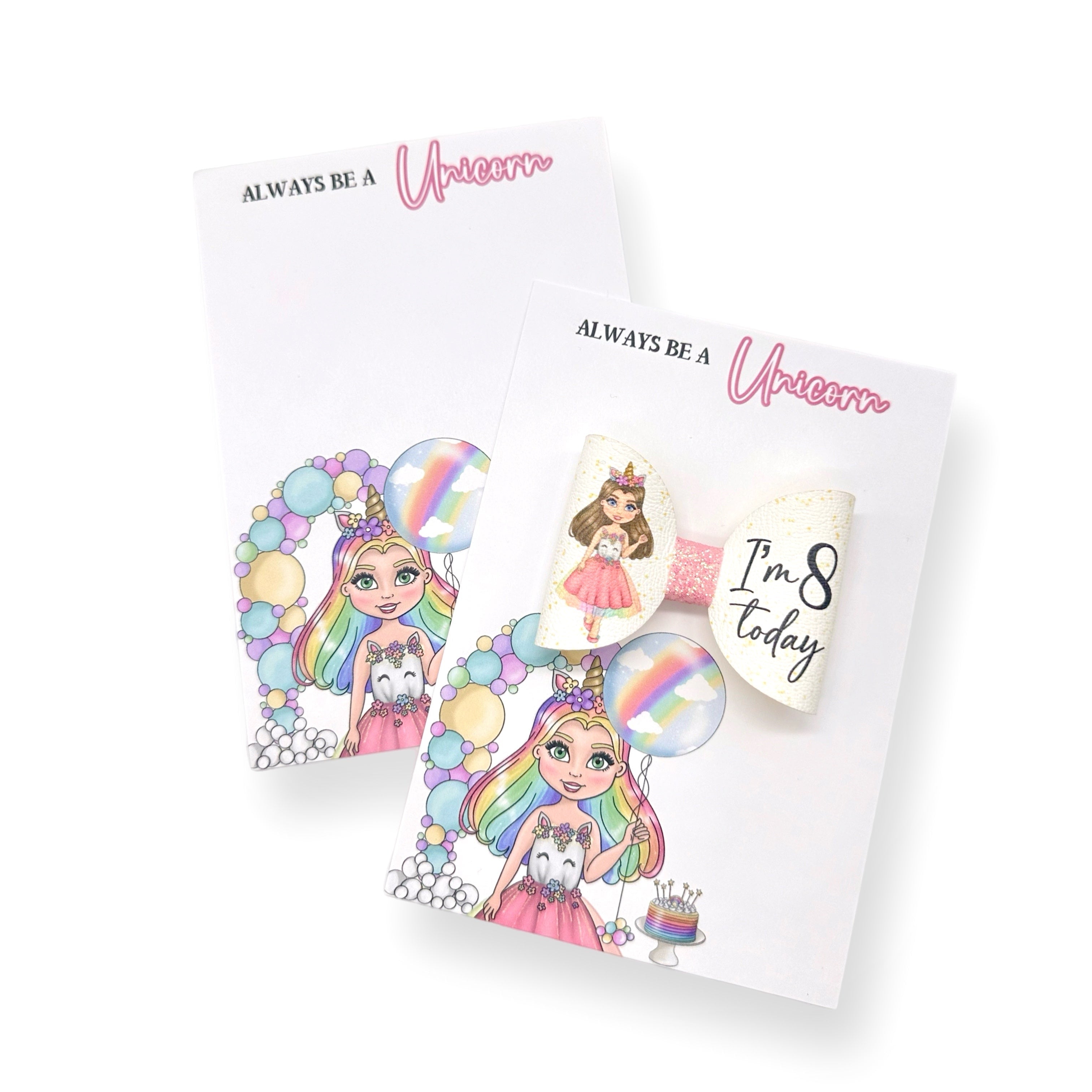 Rainbow Unicorn Birthday Dolly's 3.5” | Pre Cut DIY Hair Bow Loops with optional Glitter Tails
