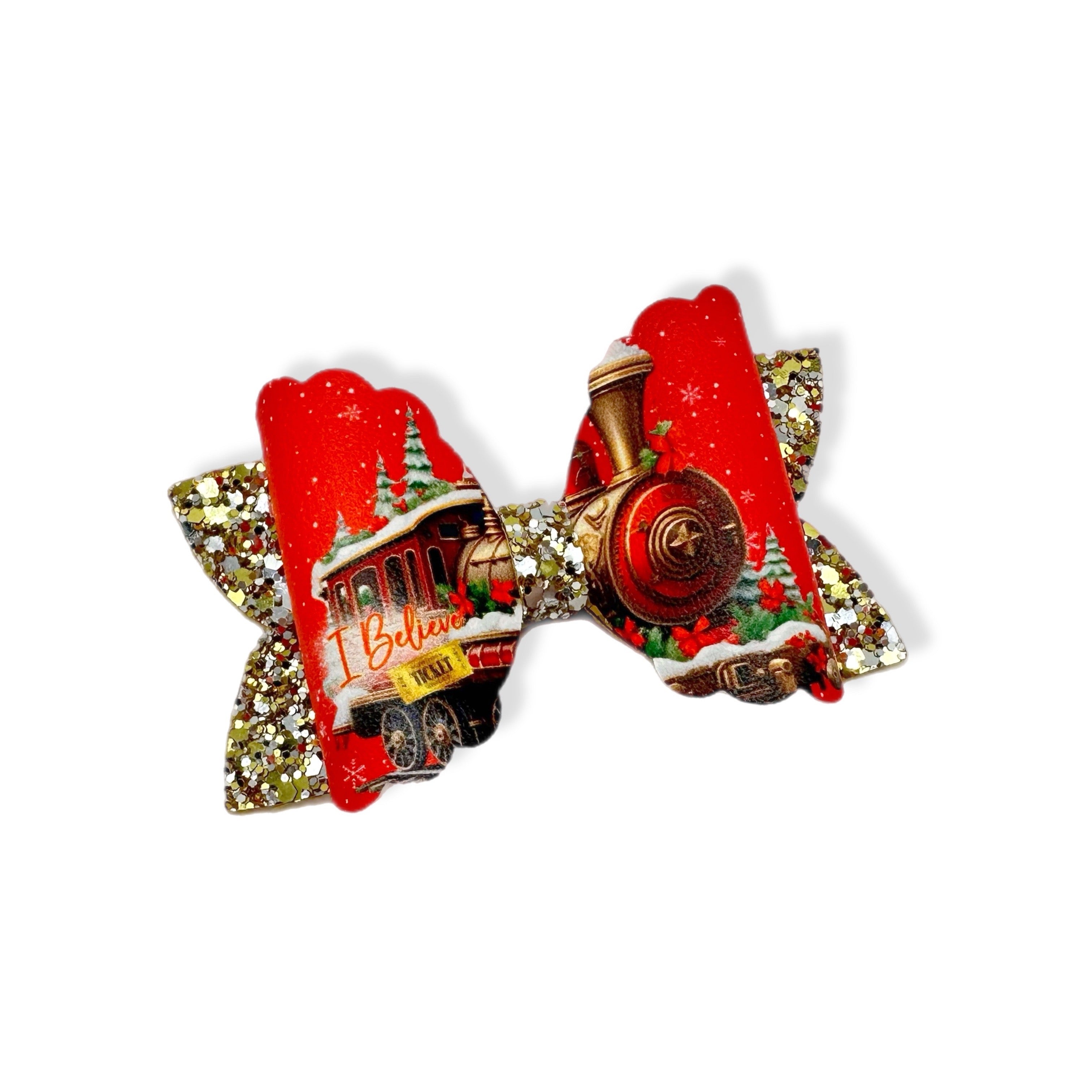 RED GOLDEN EXPRESS TRAIN BOWS 3.5” | PRE CUT DIY HAIR BOW LOOPS
