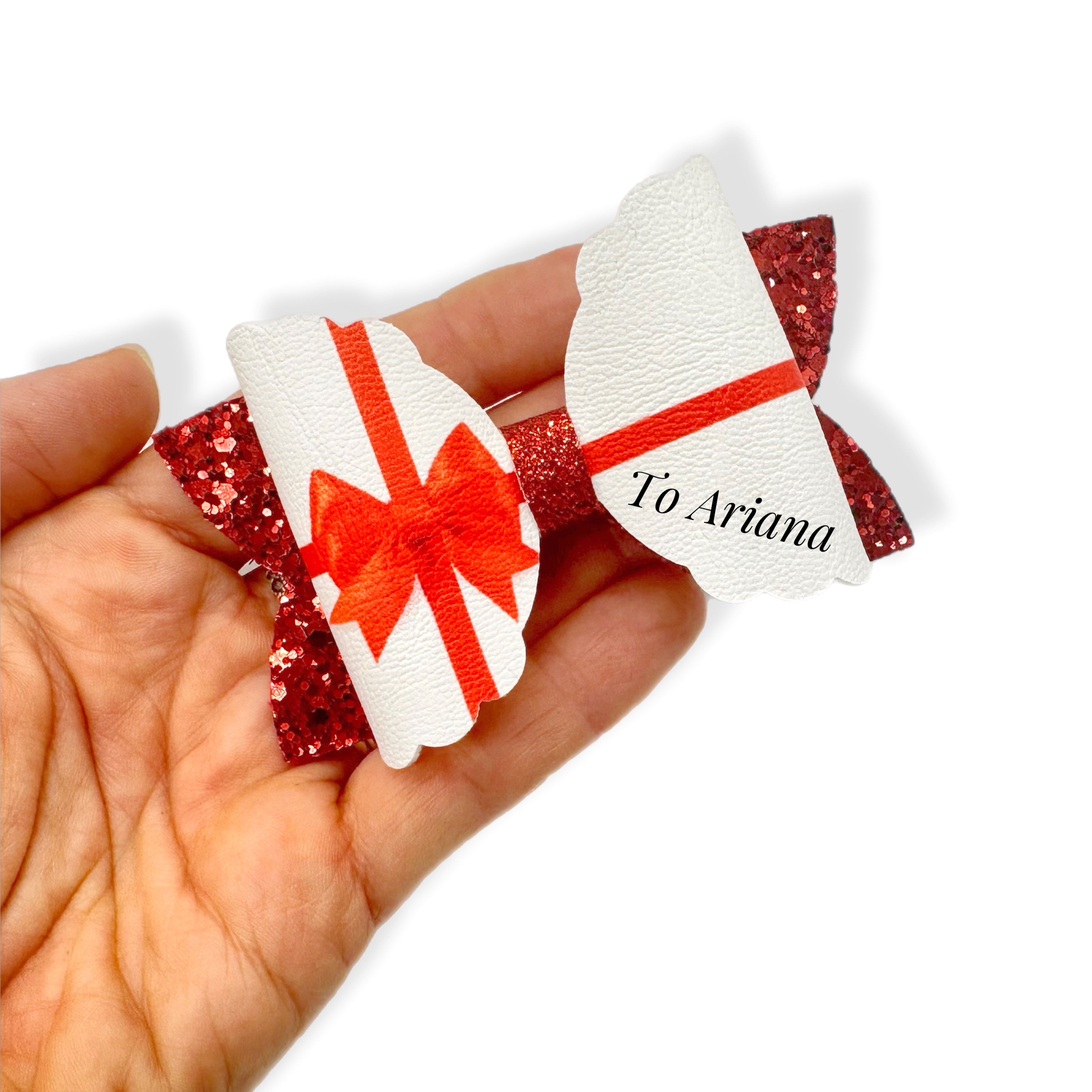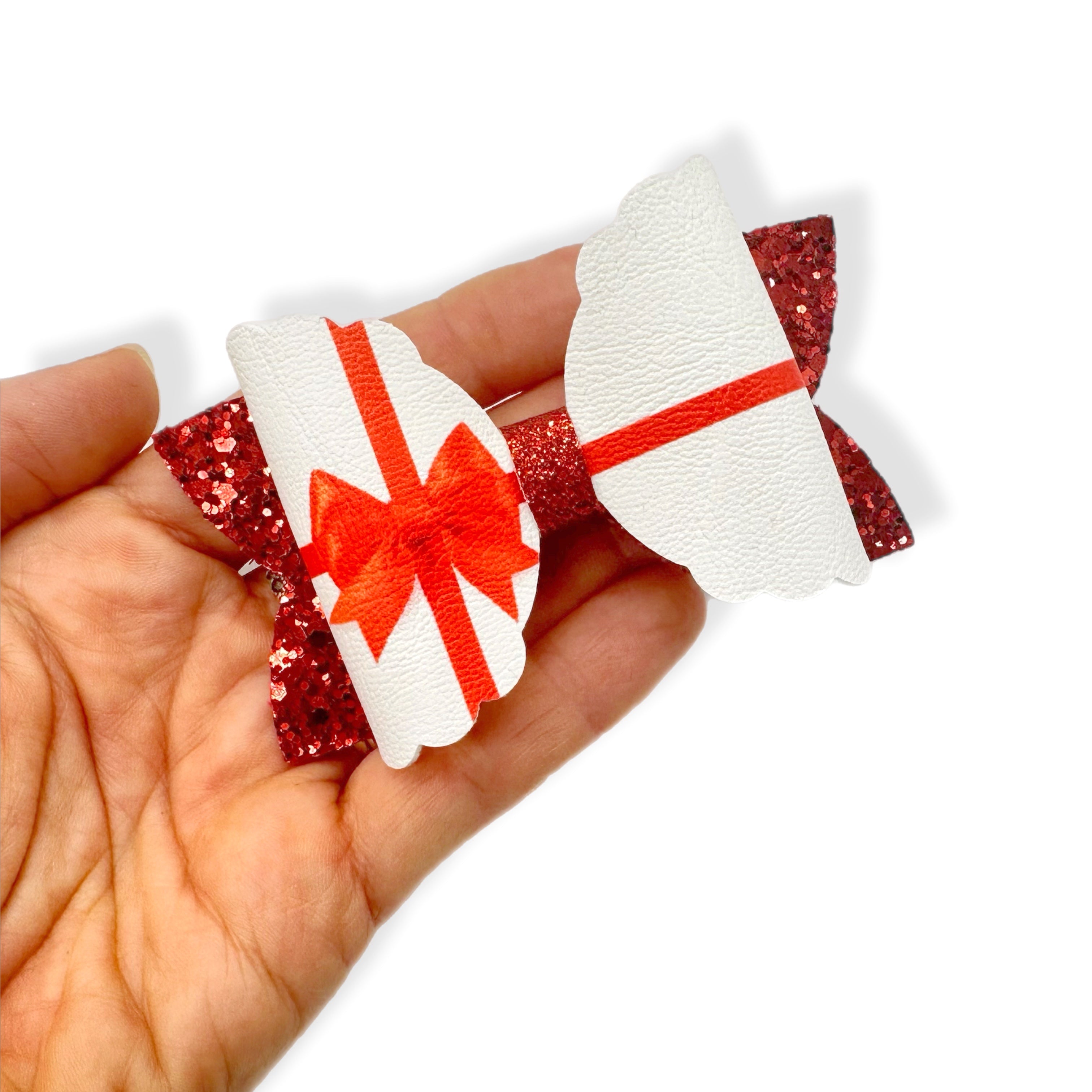 Red & White Present Gift Bow 3.5” | Pre Cut DIY Hair Bow Loops