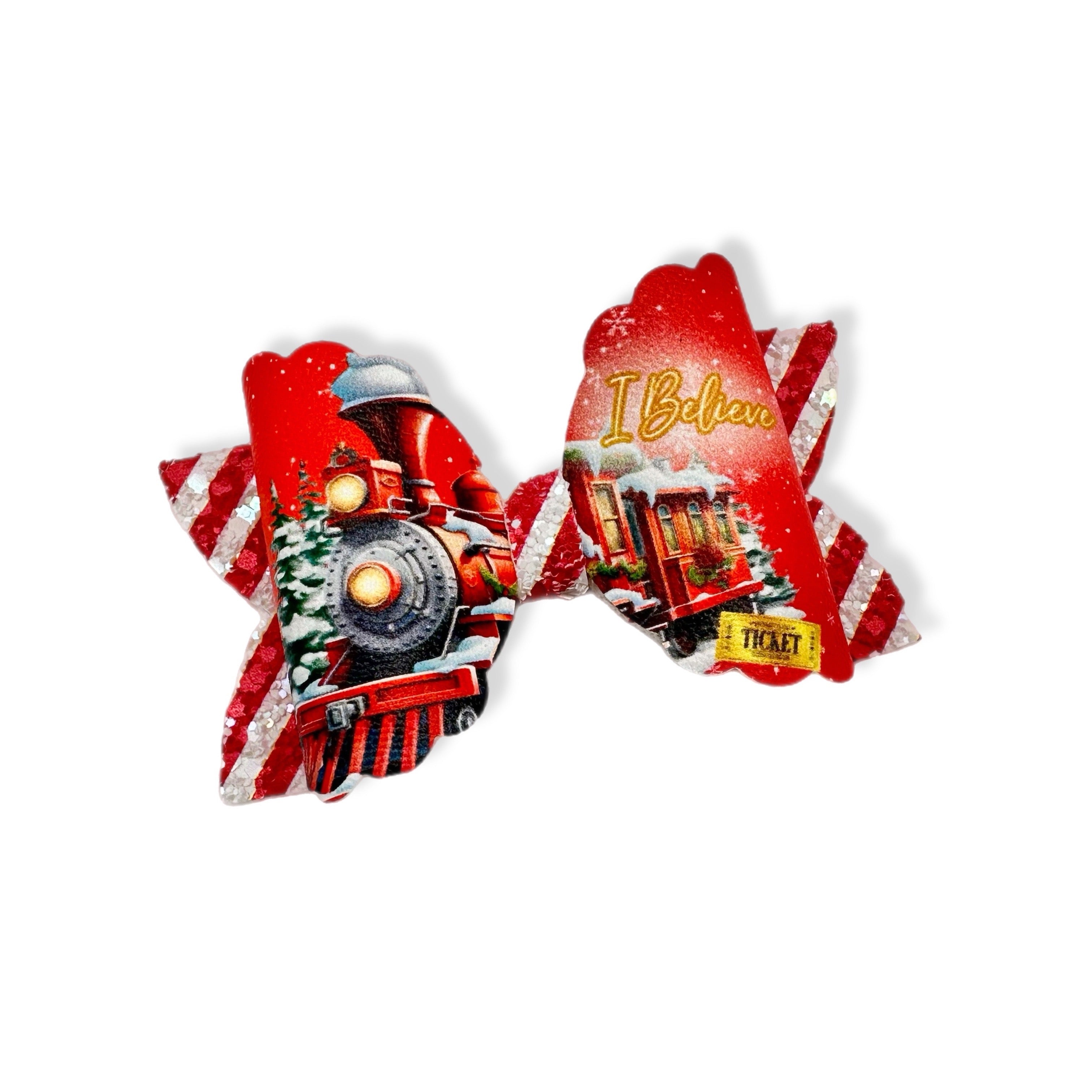RED SNOWY EXPRESS TRAIN BOWS 3.5” | PRE CUT DIY HAIR BOW LOOPS