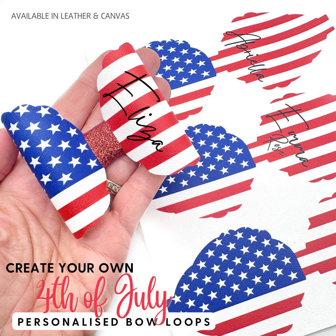 USA American Flag 4” Create your own Personalised Rhaya Bow Loops