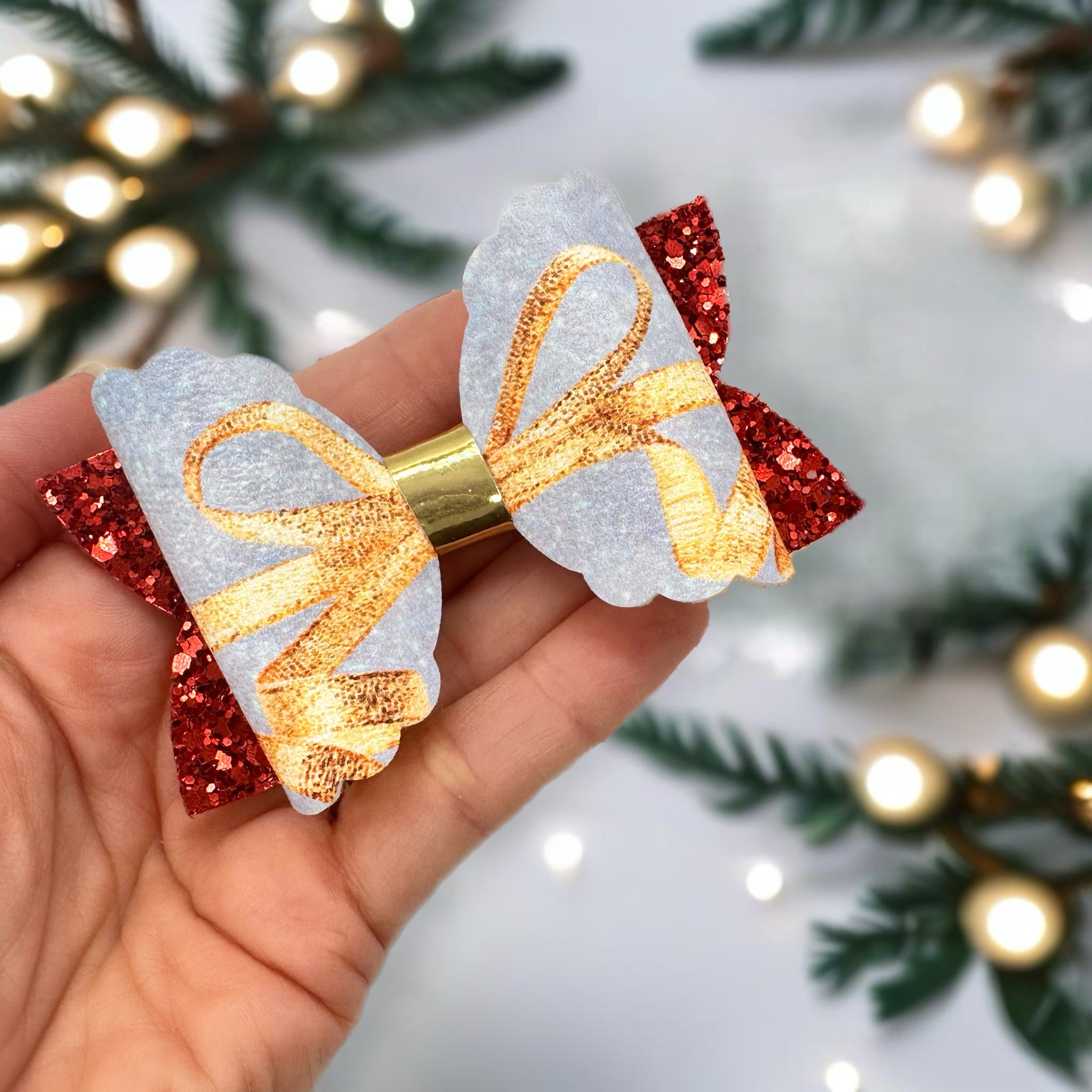 White & Gold Party Glitter Gift Bows 3.5” | Pre Cut DIY Hair Bow Loops