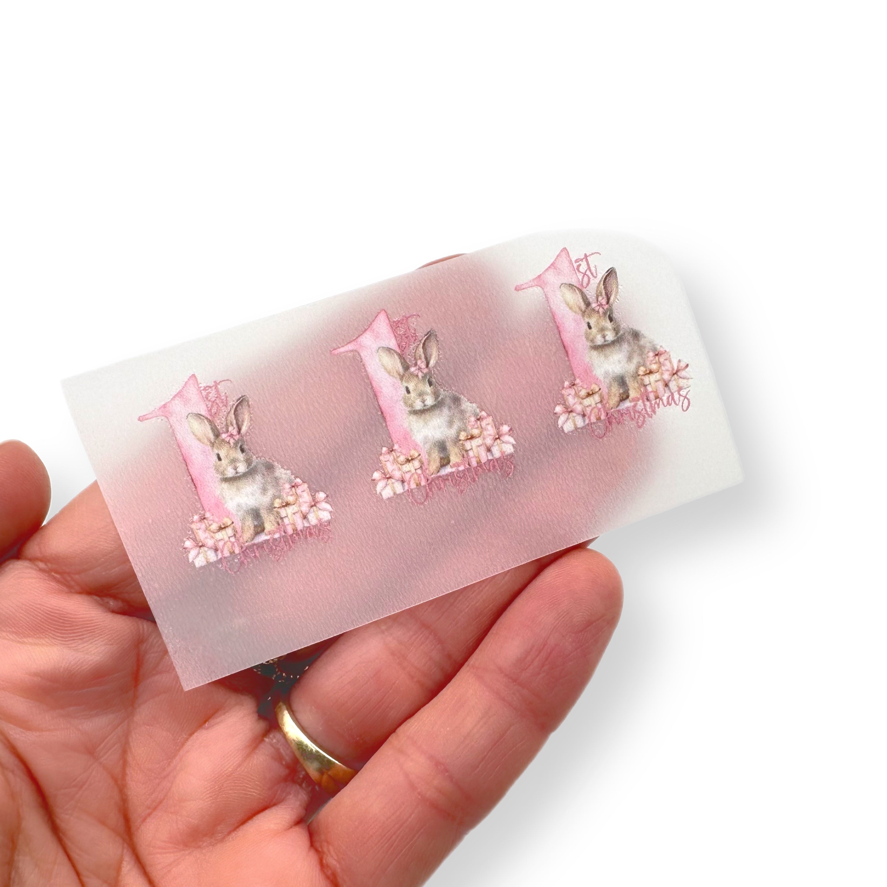 1st Christmas Pink Bunny DTF Mini Transfers 1''