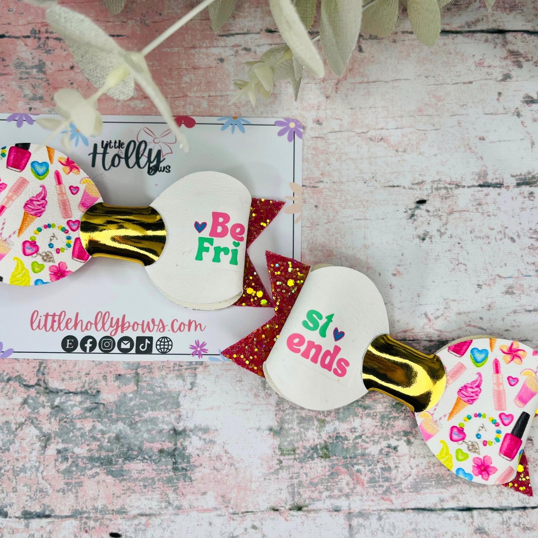 Best Friends HTV Iron on Bow Transfers- SET of 2- 1.25''