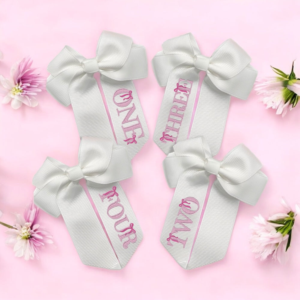DTF MINI BOW TRANSFERS- PINK BIRTHDAY WORDS WITH BOWS
