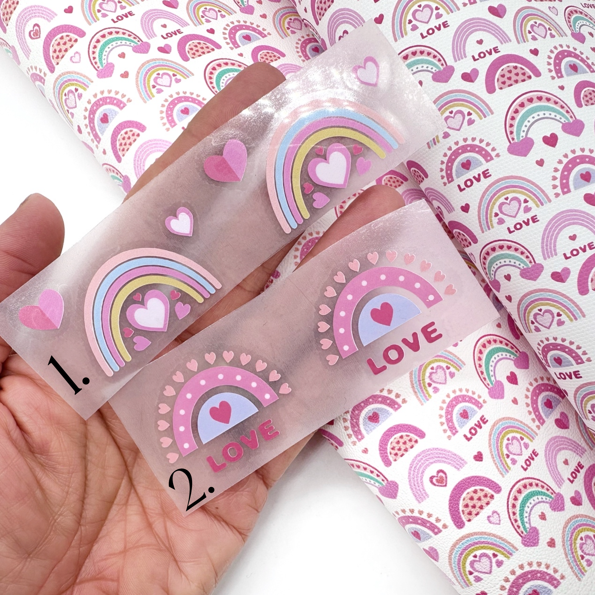 Exclusive Mini Printed Rainbow HTV Iron on Bow Transfers- SET of 2