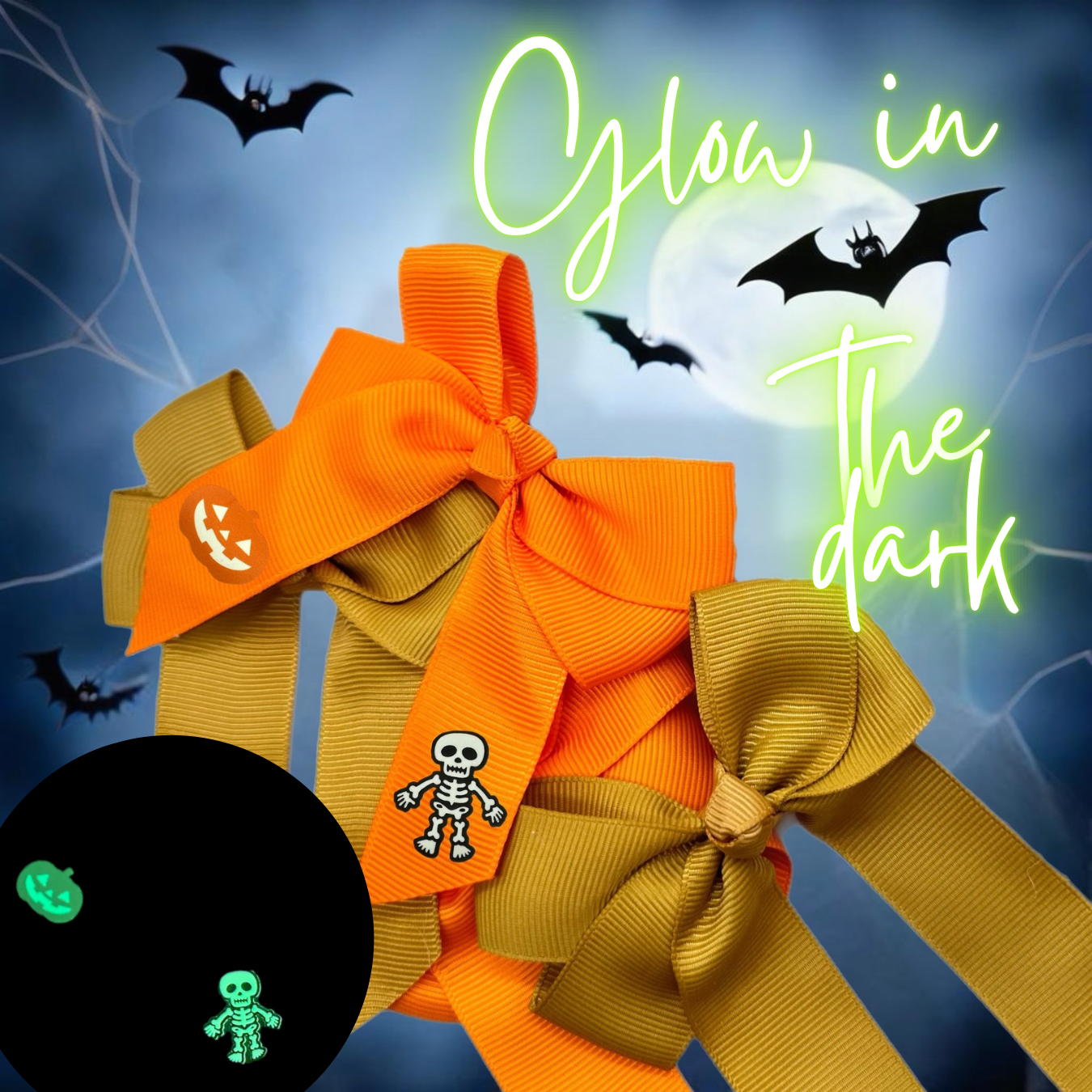 Halloween Glow in the Dark HTV Iron on Bow Transfers- SET of 4