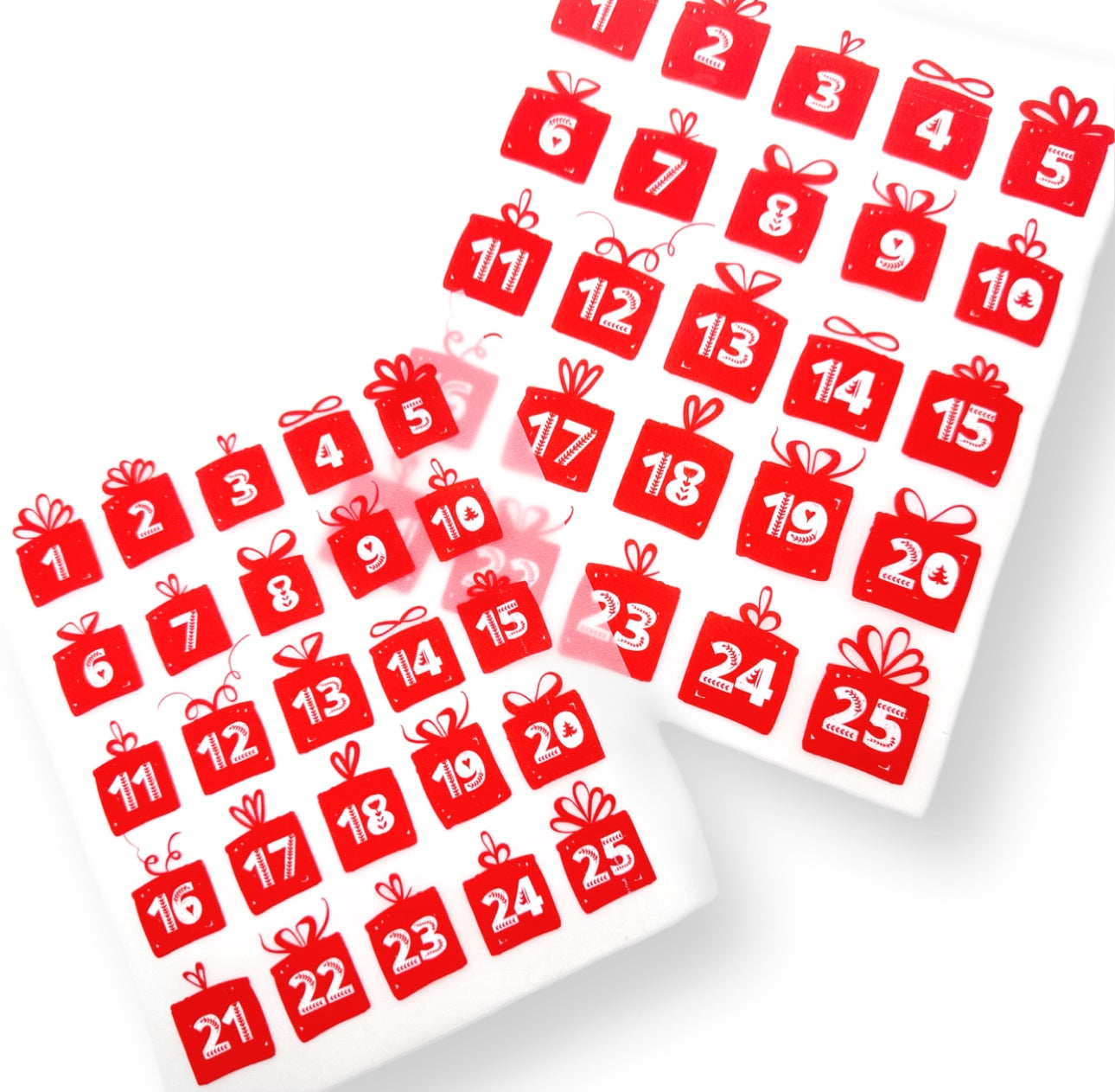 Red Present Advent Calender Number Transfers 1'' & 1.5''- Numbers 1-25 Set
