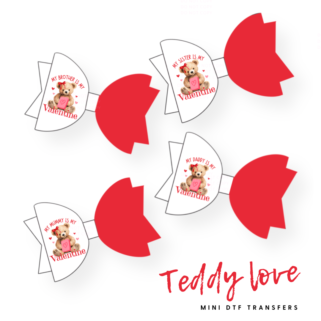 Valentines Teddy Bears DTF Mini Transfers 1''