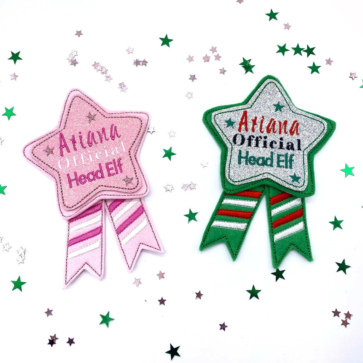 Exclusive Personalised Official Head Elf Shooting Star Badge KIT Feltie or Badge Face