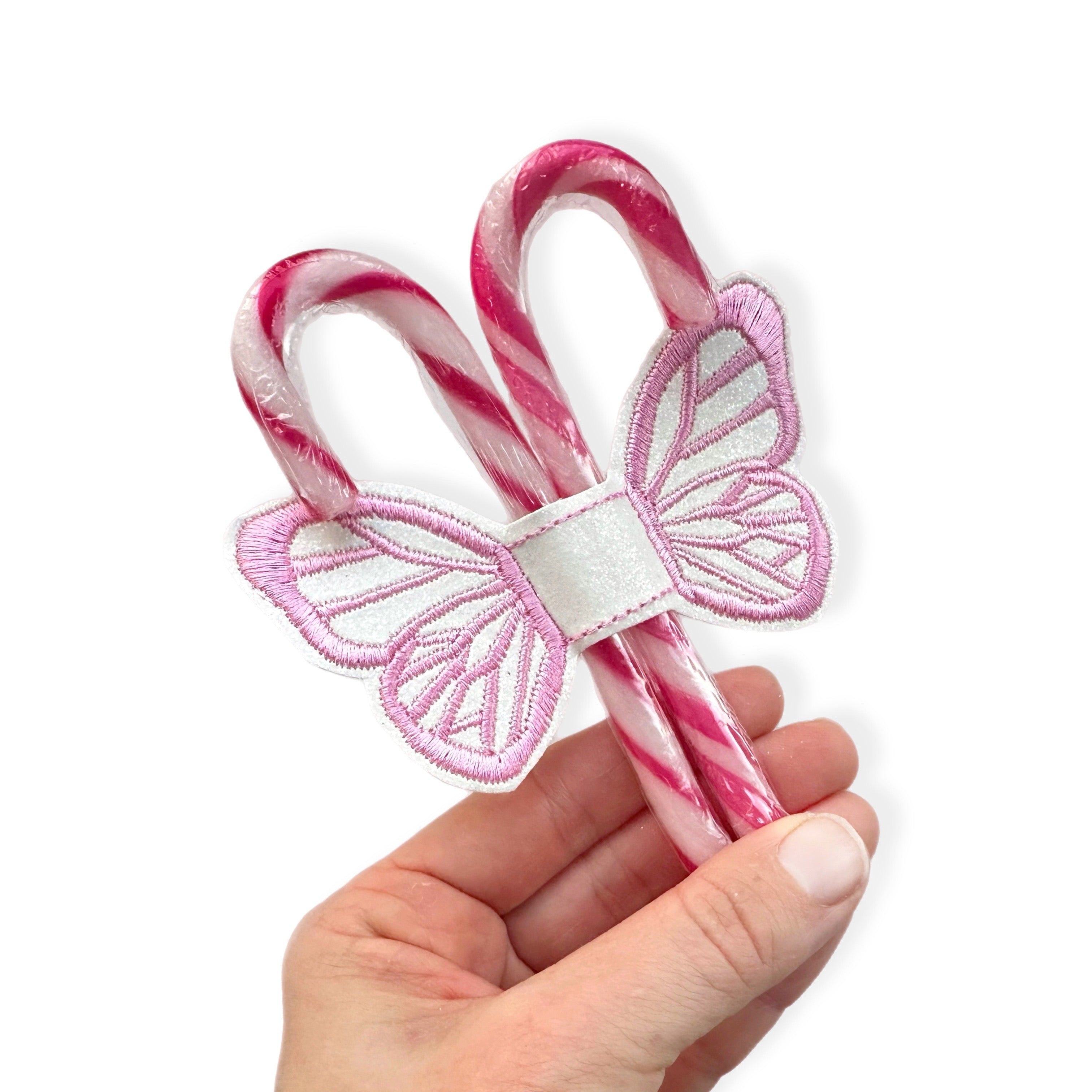 White Glittery Butterfly | Candy Cane Cuties Feltie Treat Holders