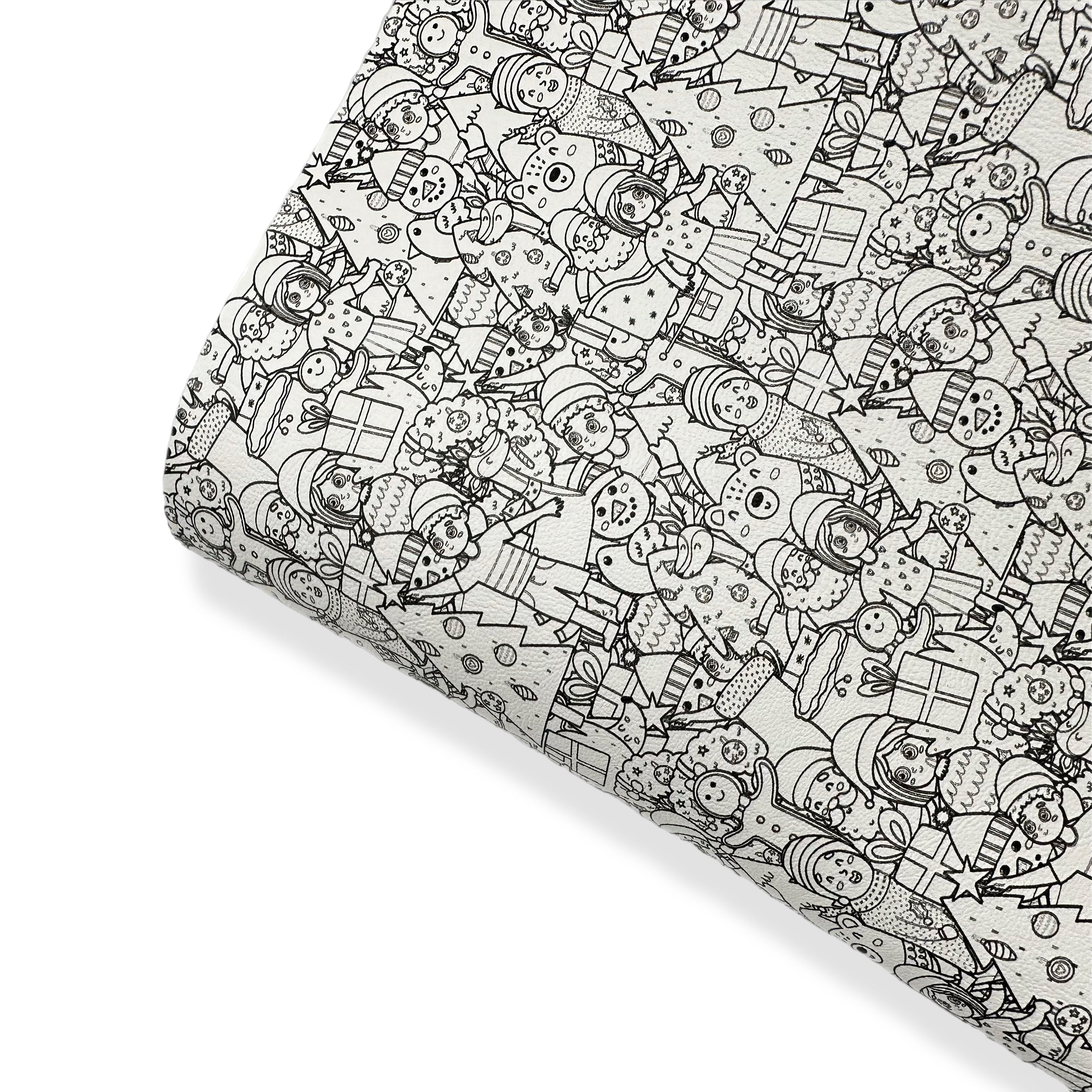Christmas Colour Me In Doodle Premium Faux Leather Fabric