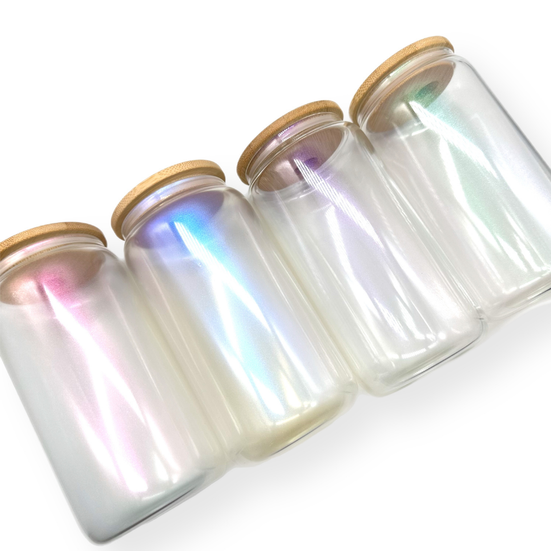 FAIRY IRIDESCENT GLITTER RAINBOW EFFECT GLASS TUMBLER WITH STRAW & BAMBOO LID - 16OZ