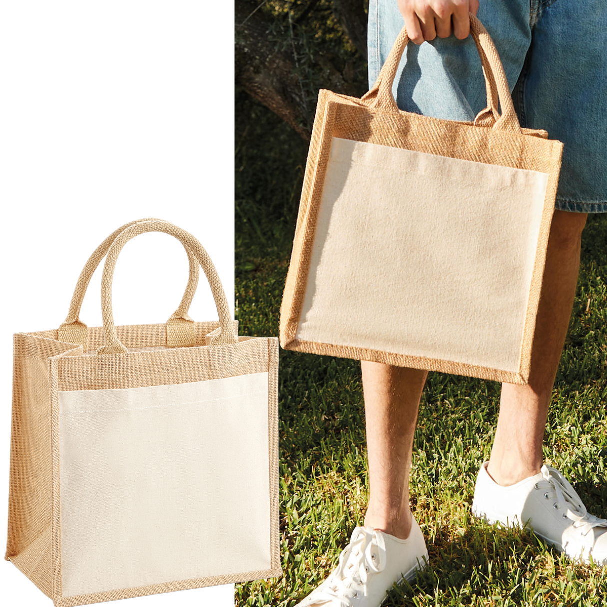 Midi Cotton Pocket Jute Bag