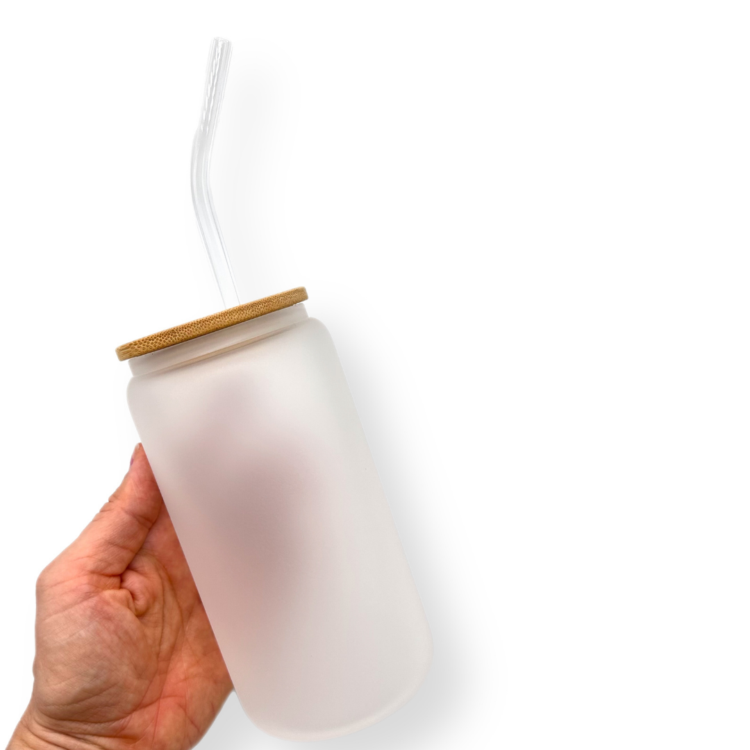 FROSTED GLASS TUMBLER WITH STRAW & BAMBOO LID - 16OZ