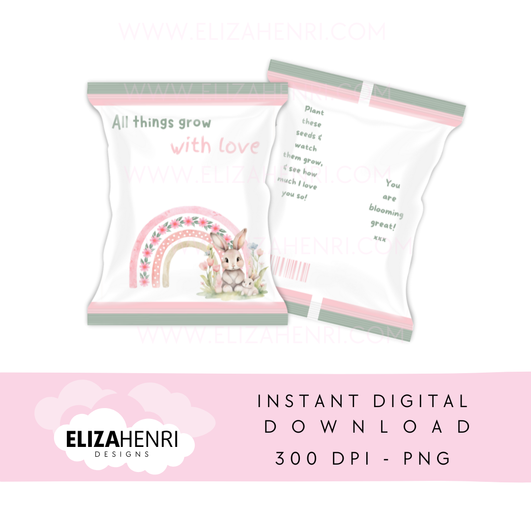 All things Grow with Love Pink & Green Seed Packet Design Digital Download