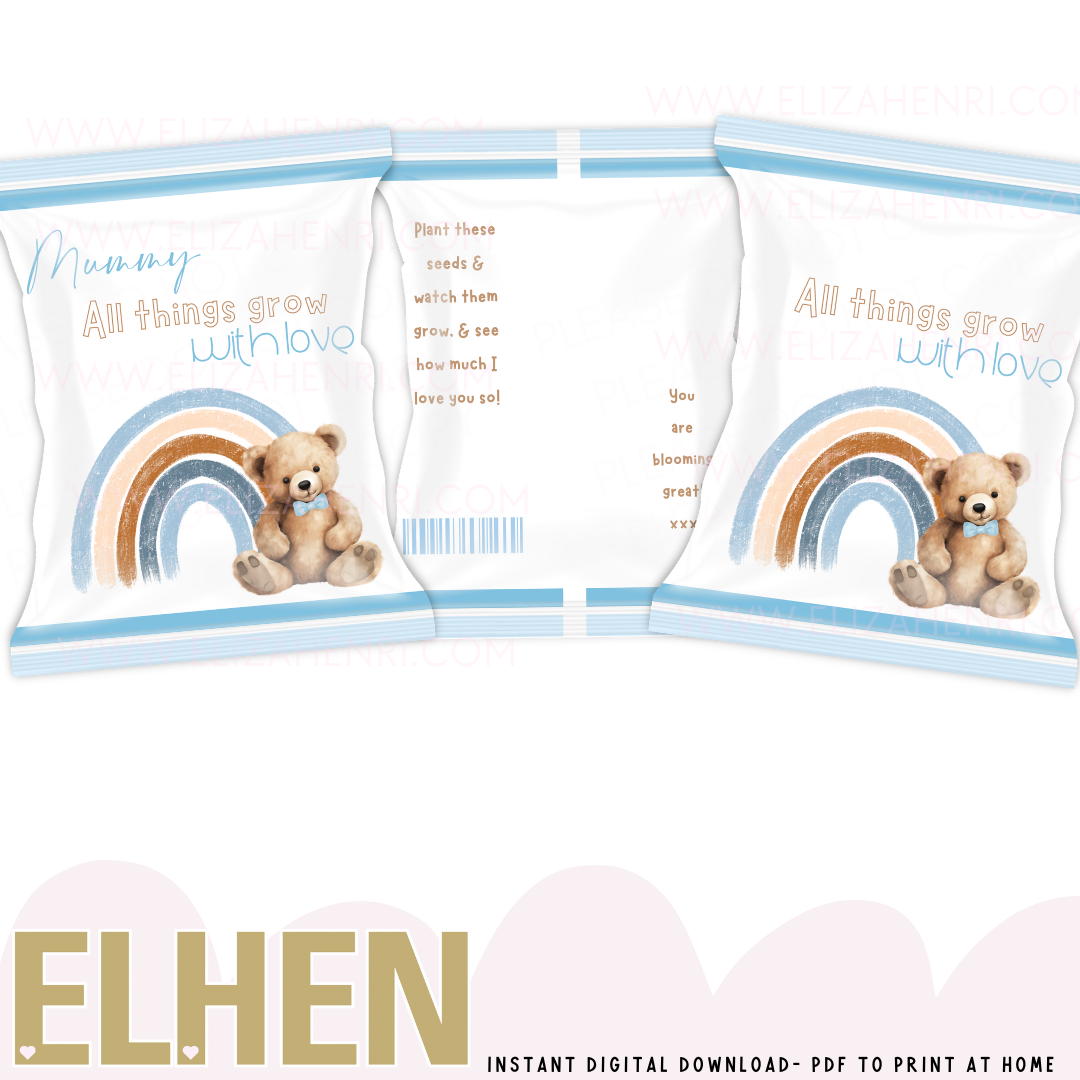 Mothers Day Blue Teddy Rainbow Seed Pack Design Digital Download