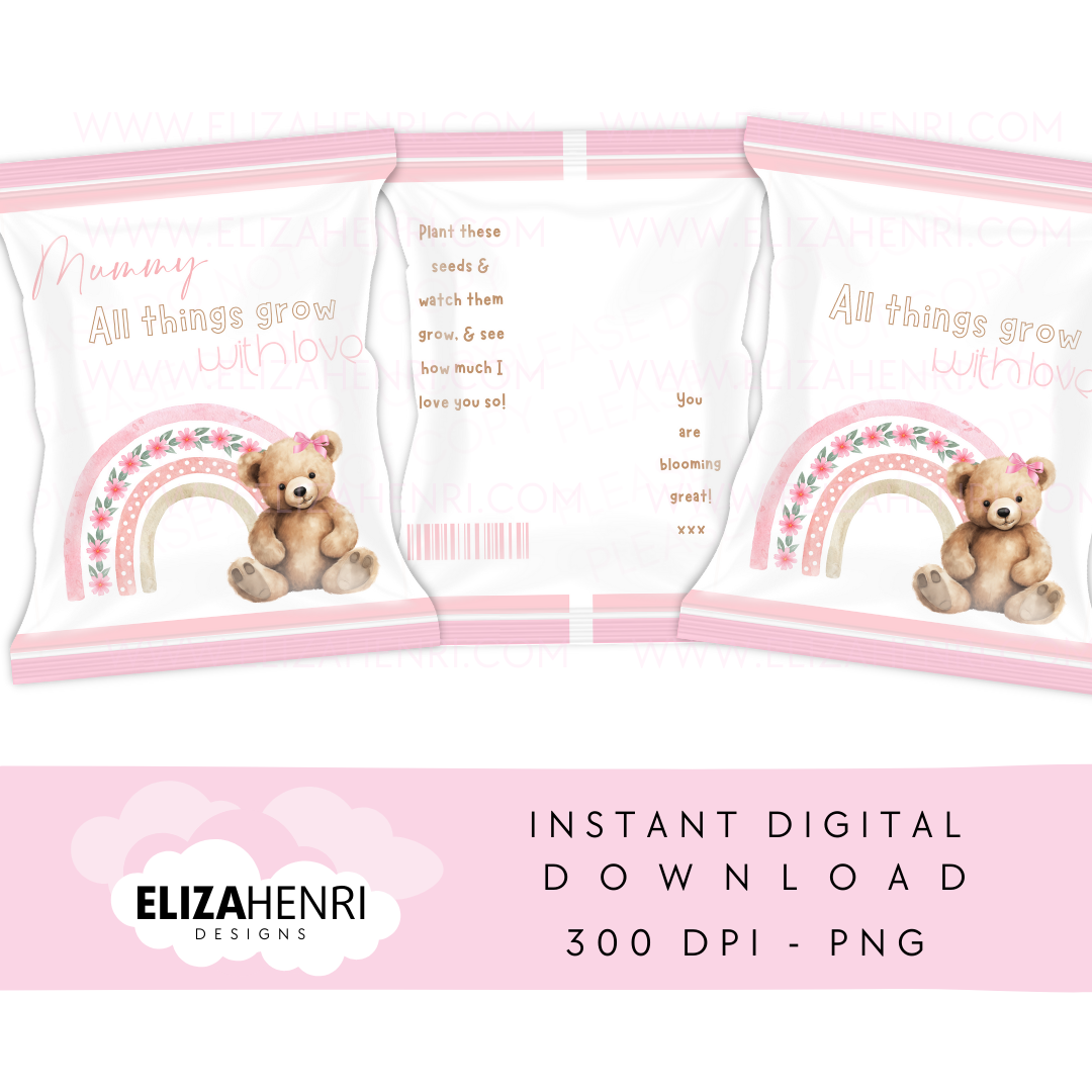 Mothers Day Pink Teddy Rainbow Seed Pack Design Digital Download