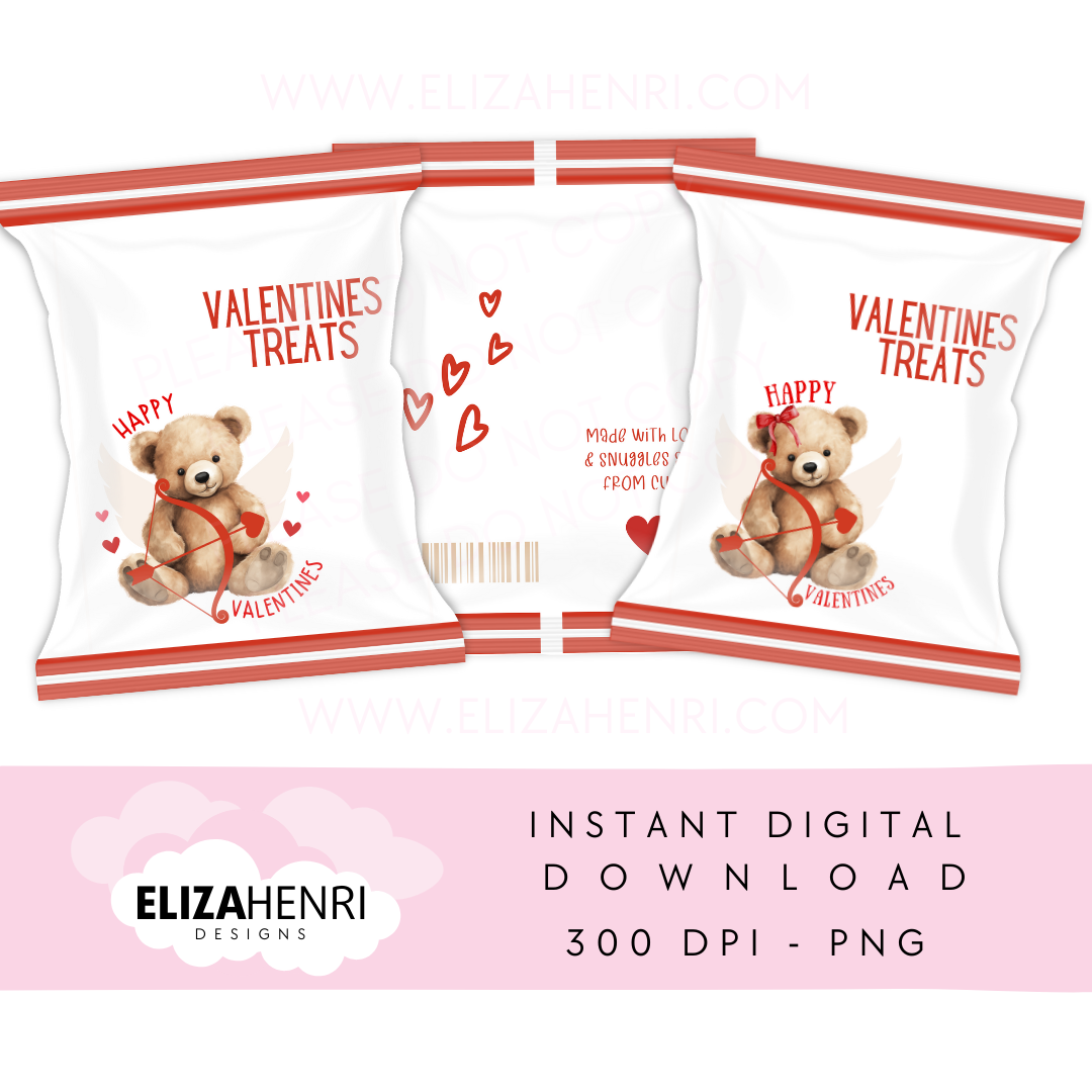 Red Teddy Valentines Treat Pack Design Digital Download- 2 Designs