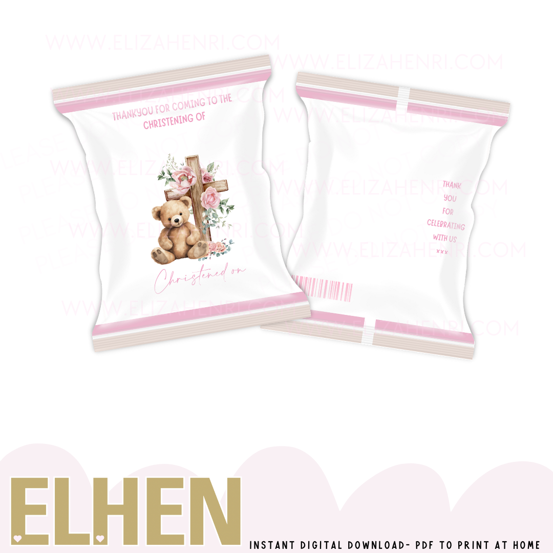 Teddy Pink Christening Treat Pack Design Digital Download