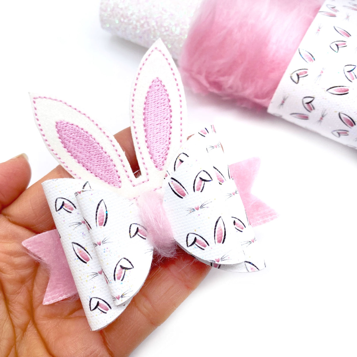 Cute Bunny Face Lux Premium Printed Bow Fabrics