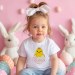 CUSTOM DTF TRANSFER - HATCHING CHICK EGG PINK BOW EMBROIDERY EFFECT