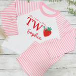CUSTOM DTF TRANSFER - WHEN I WAKE UP I’LL BE TWO- STRAWBERRIES- EMBROIDERY EFFECT