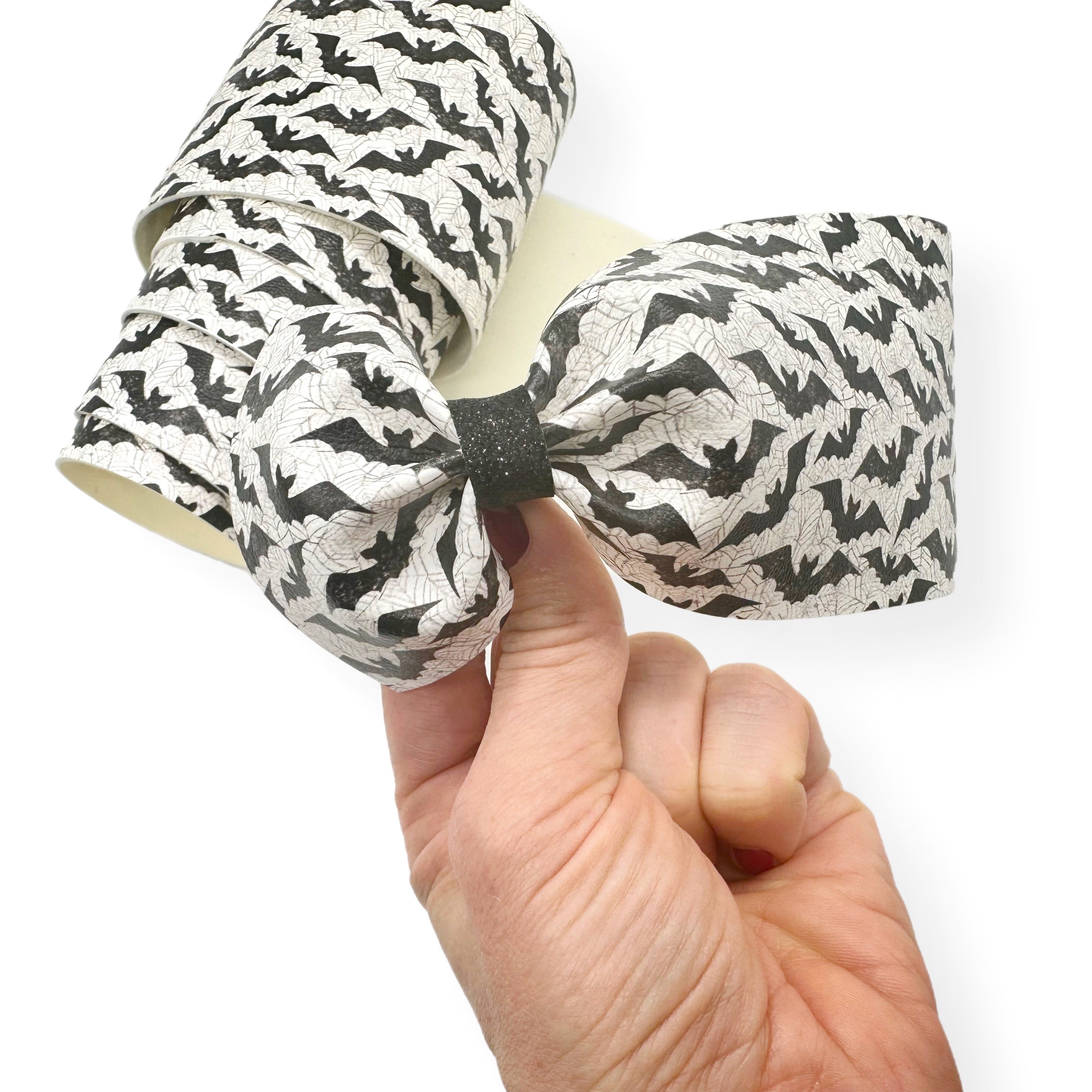 These beautiful, high quality patterned faux leather mega bow rolls are approximately 3” tall and 130cm long. Our Reach compliant faux leather rolls can be used for pinch bows or regular bows with very little wastage.