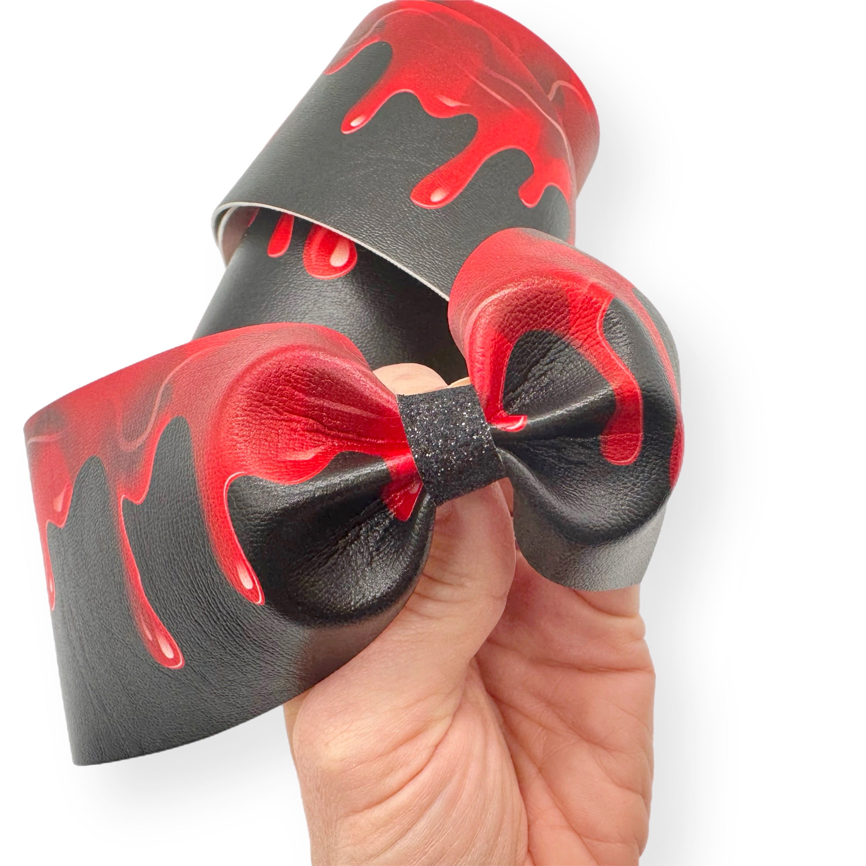Blood Drip on Black Faux Leather Mega Bow Strips